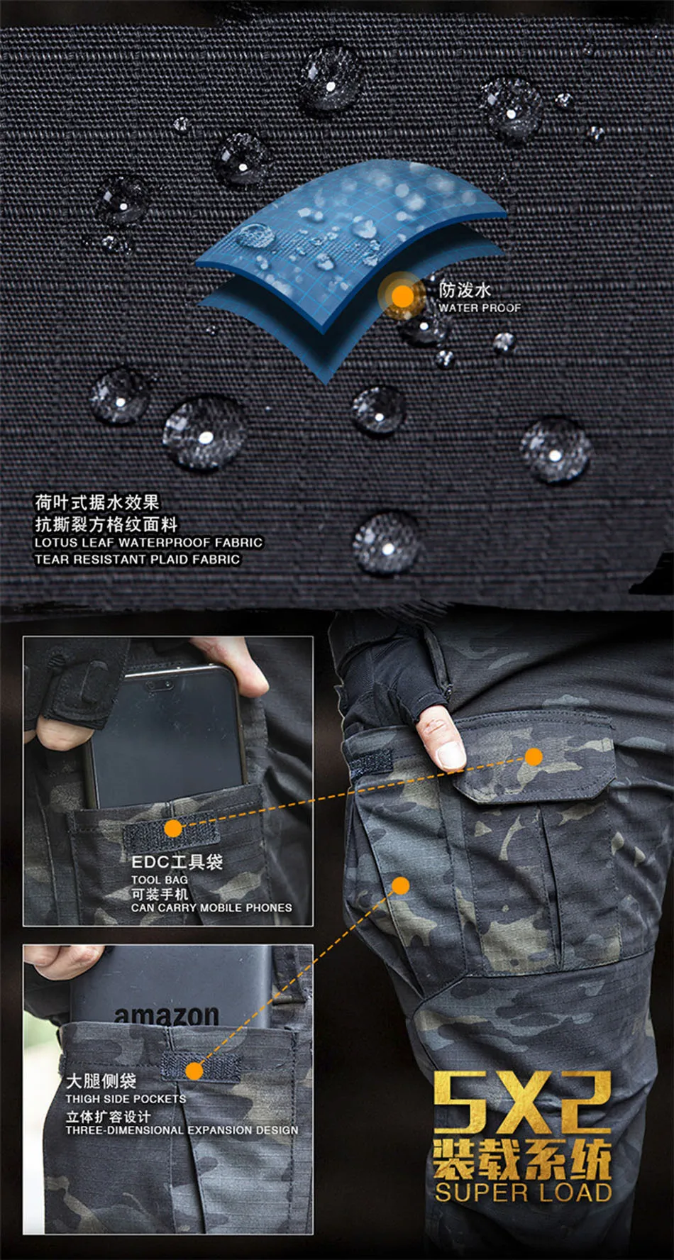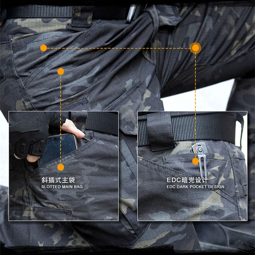 Новый Мужские брюки карго армии Военная Униформа Стиль прочные брюки мужские камуфляжные брюки для девочек размера плюс для девочек много карманов для мужчин с камуфляжным принтом черный Trou