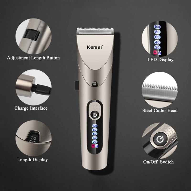 Электрическая машинка для стрижки волос Kemei, профессиональный триммер для красоты, электрическая Водонепроницаемая машинка для стрижки волос, Мужская Беспроводная Машинка для стрижки волос