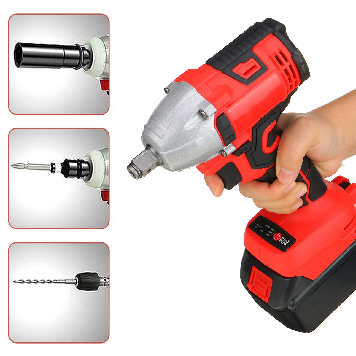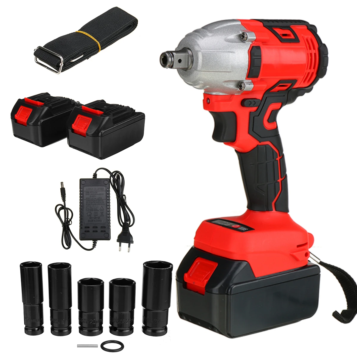 Беспроводной электрический гайковерт 388Vf, перезаряжаемый бесщеточный ударный гайковерт с литий-ионной батареей 12 нм + Набор торцевых ключей