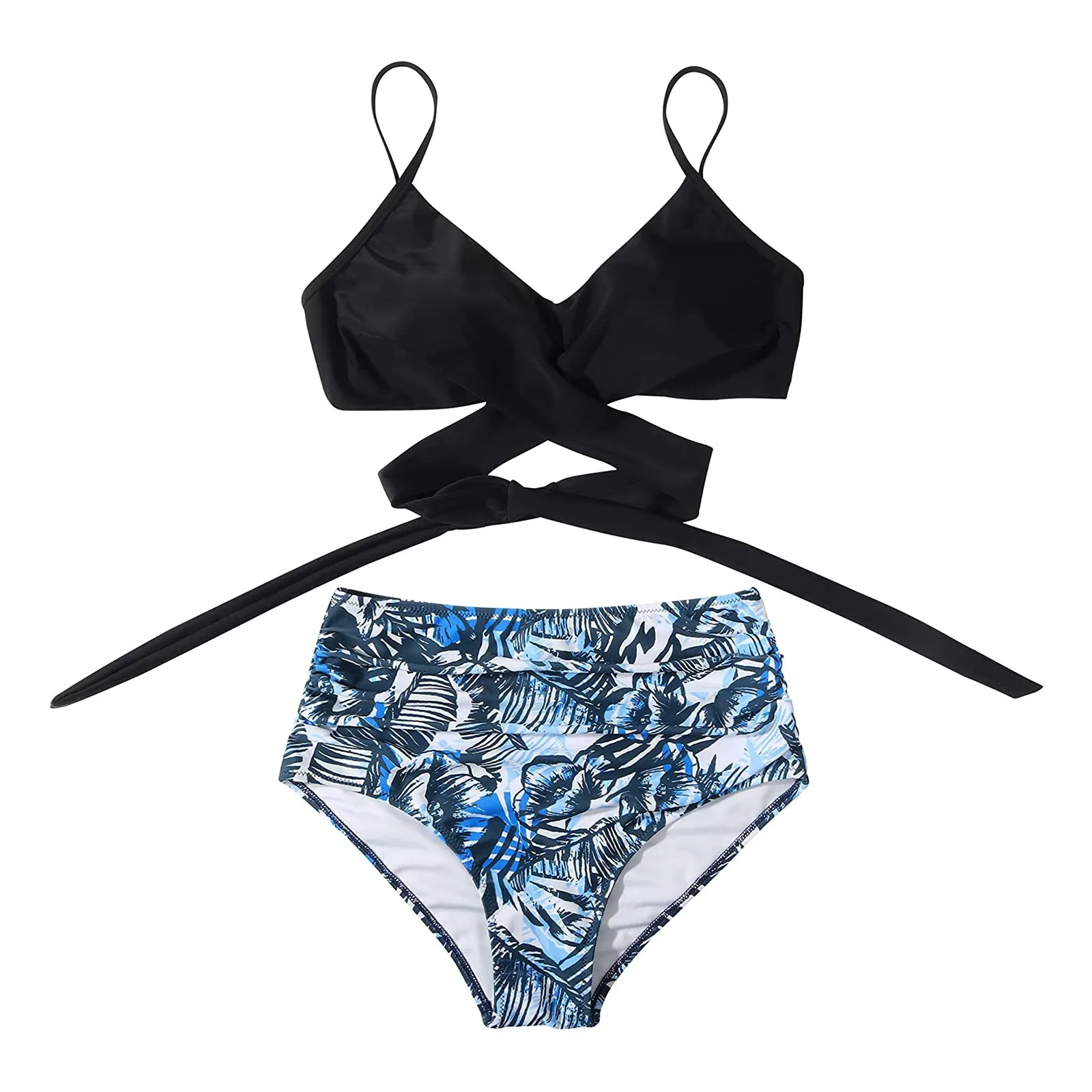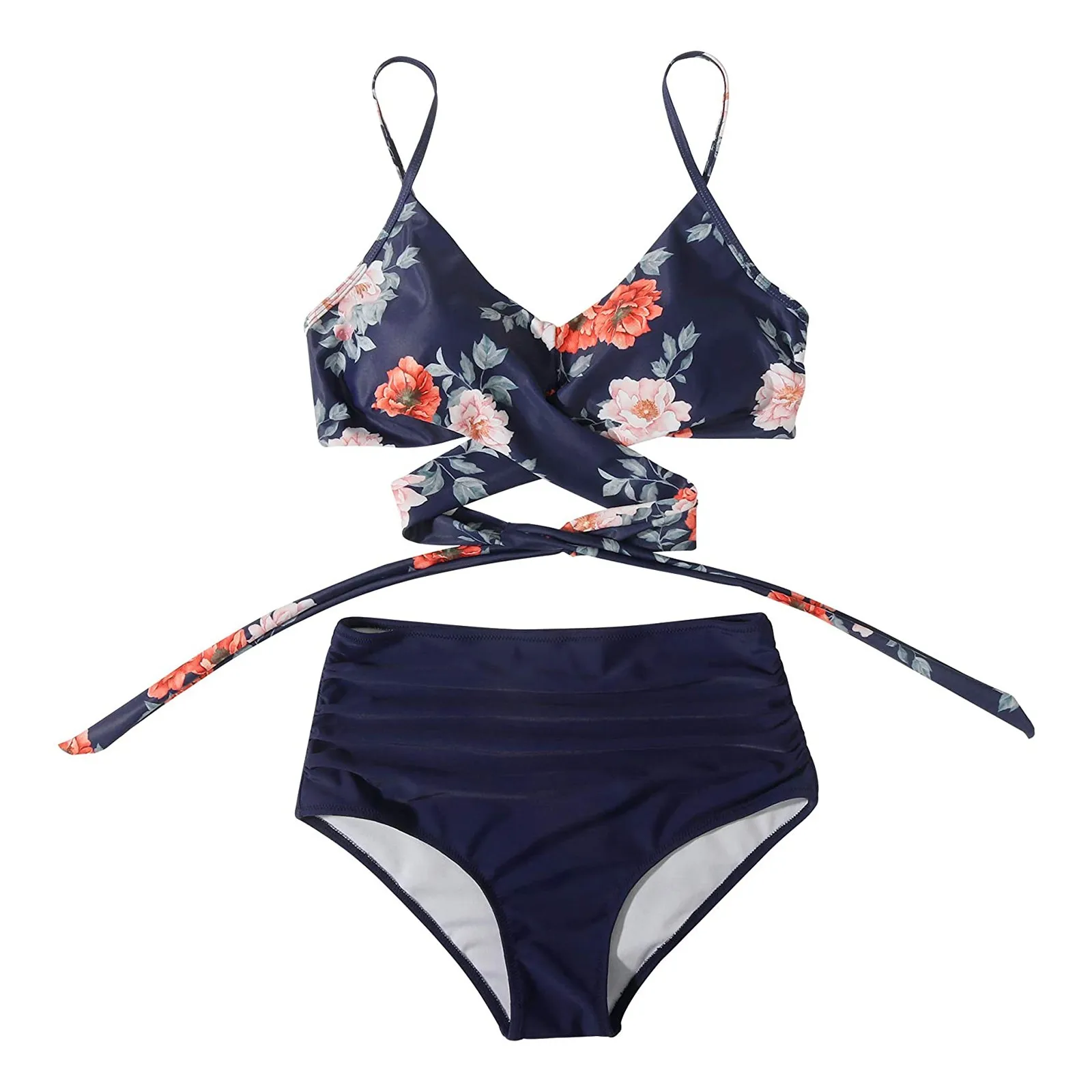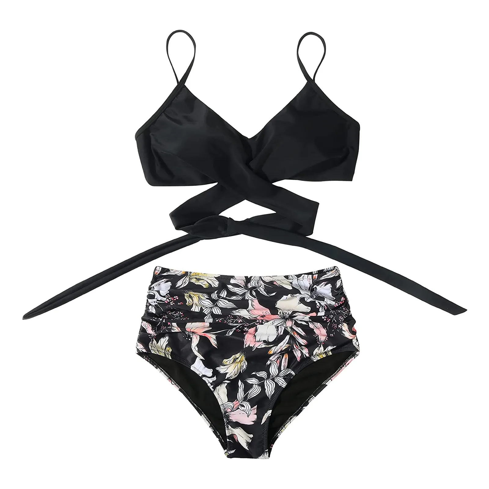 Бразильское бикини из 2 предметов раздельный комплект бикини с цветочным принтом купальник женский с высокой талией Шорты однотонные бразильские трусики бикини