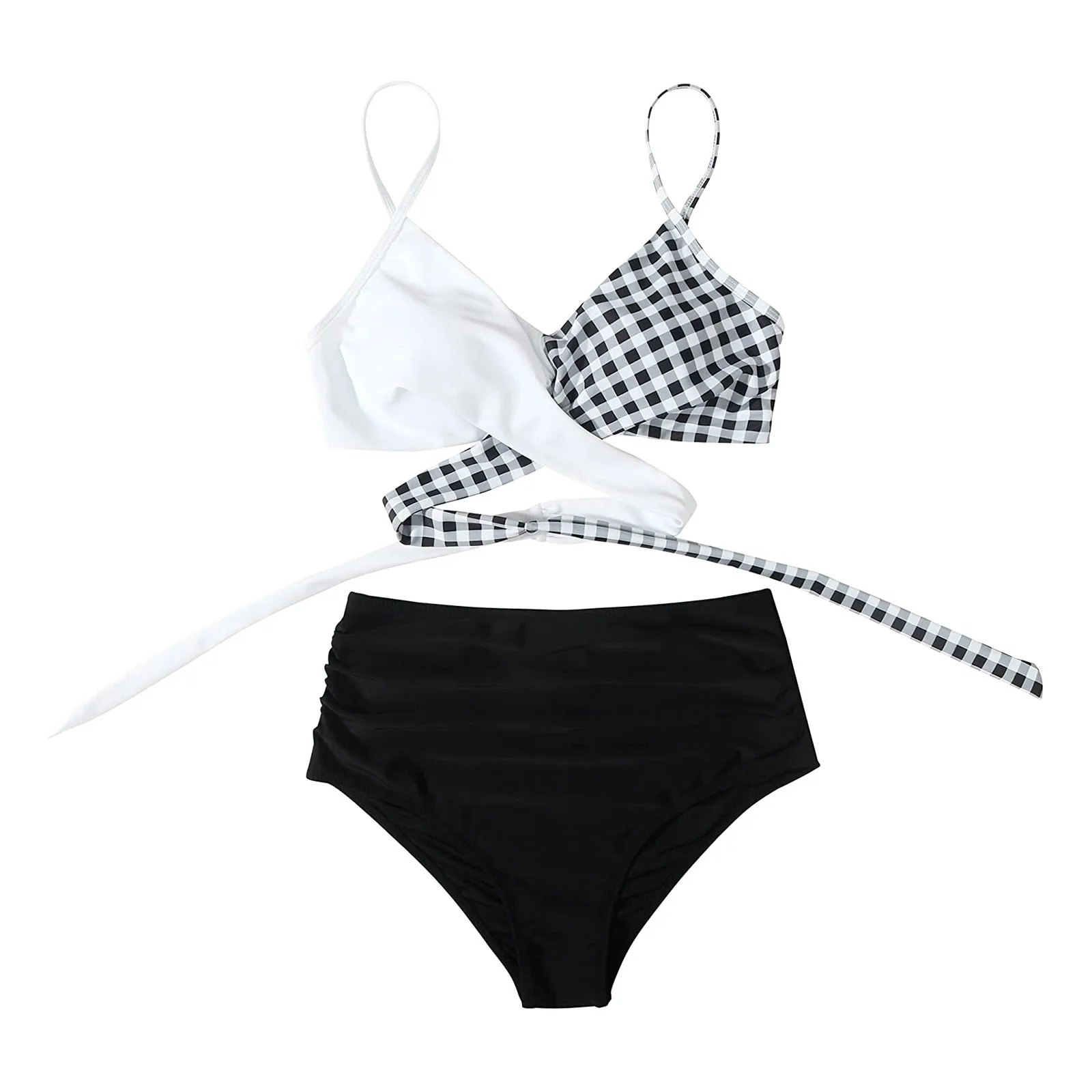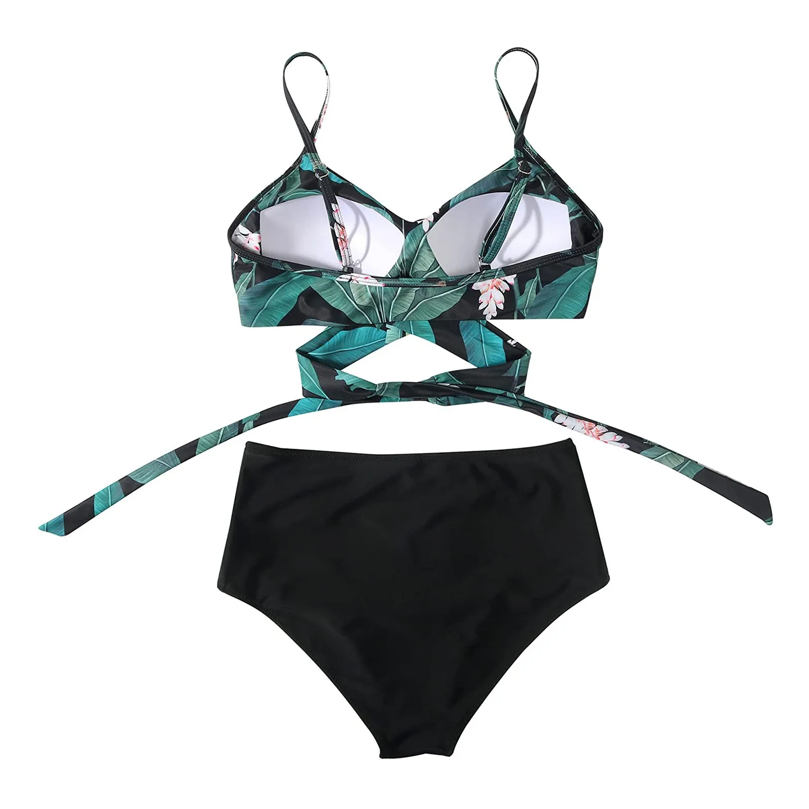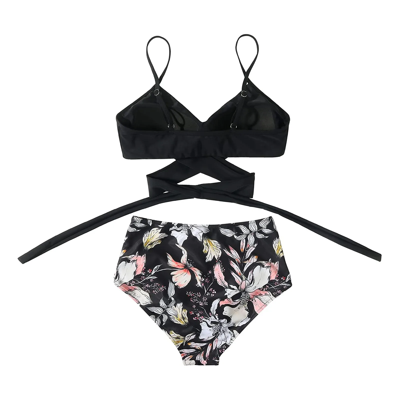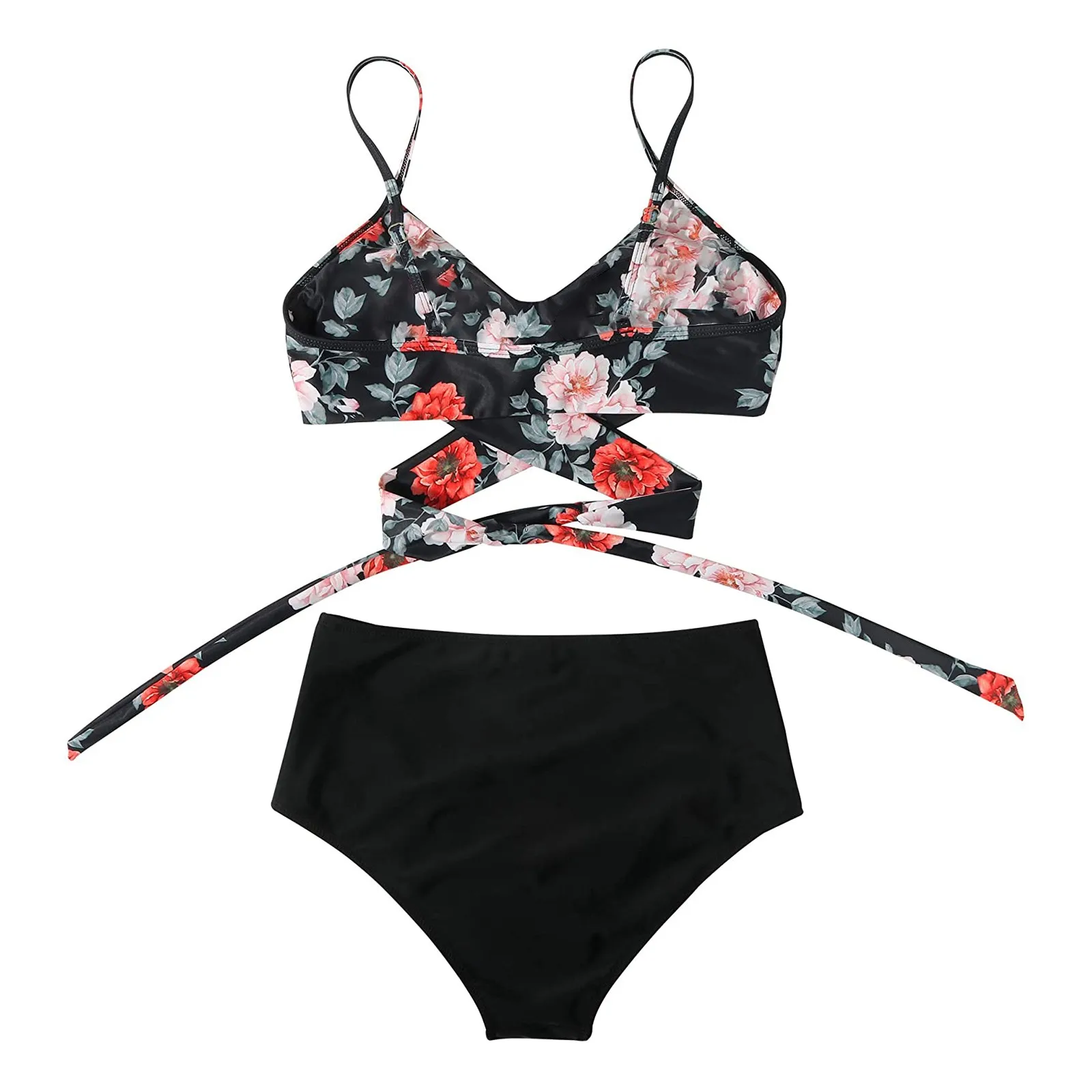 Бразильское бикини из 2 предметов раздельный комплект бикини с цветочным принтом купальник женский с высокой талией Шорты однотонные бразильские трусики бикини