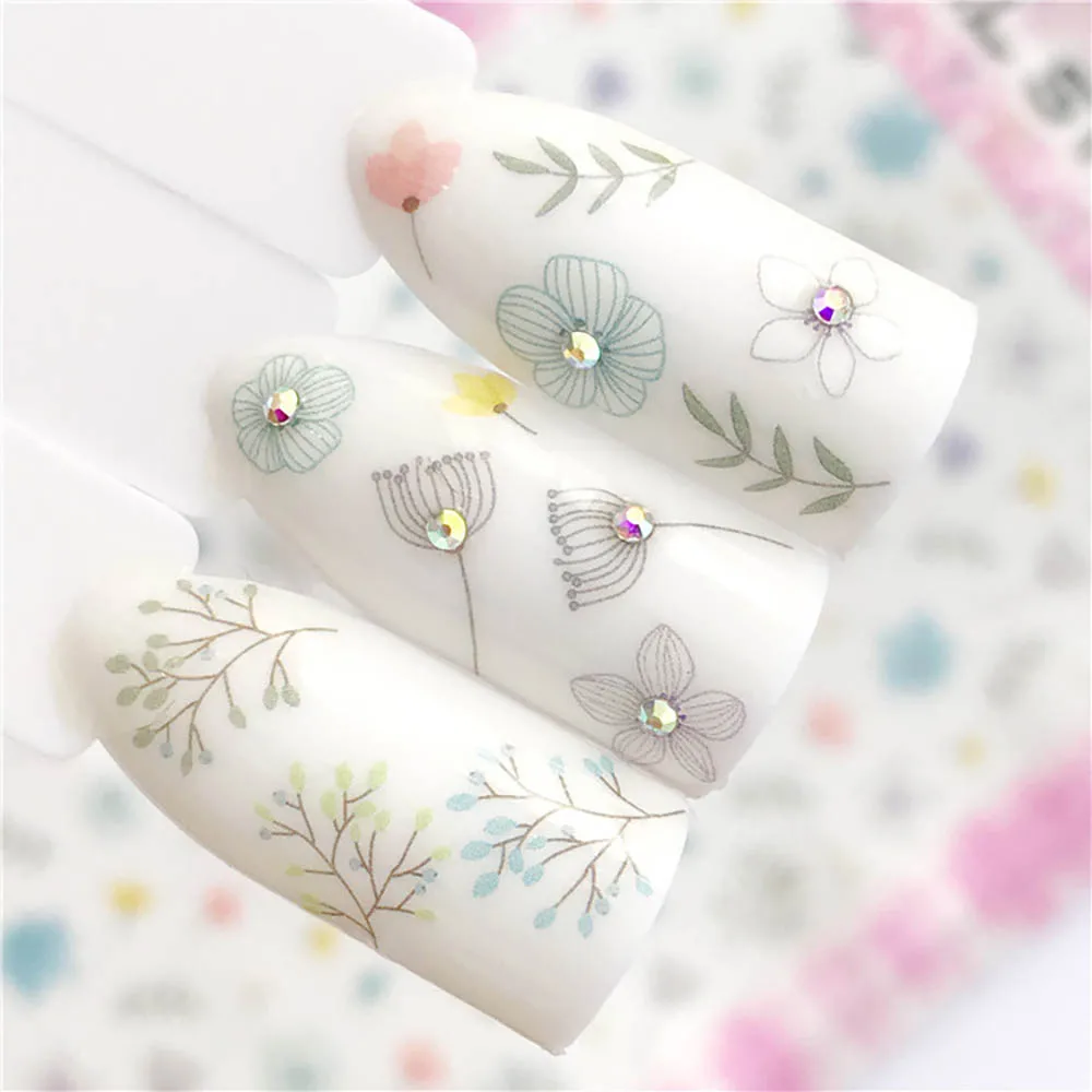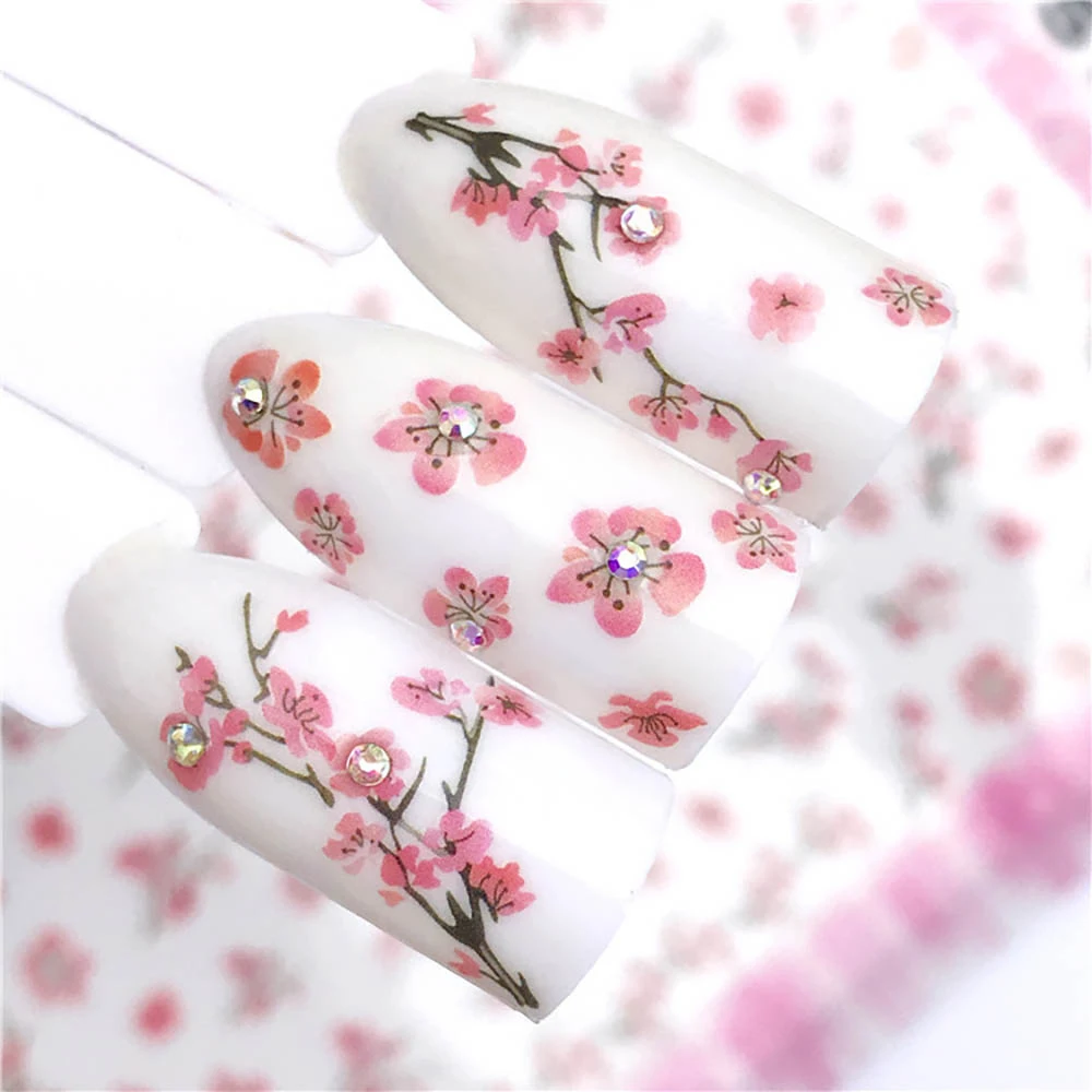 Декоративное искусство для ногтей, искусство ногтей, листья, дерево, маленькие Переводные розовые цветы, наклейки для ногтей