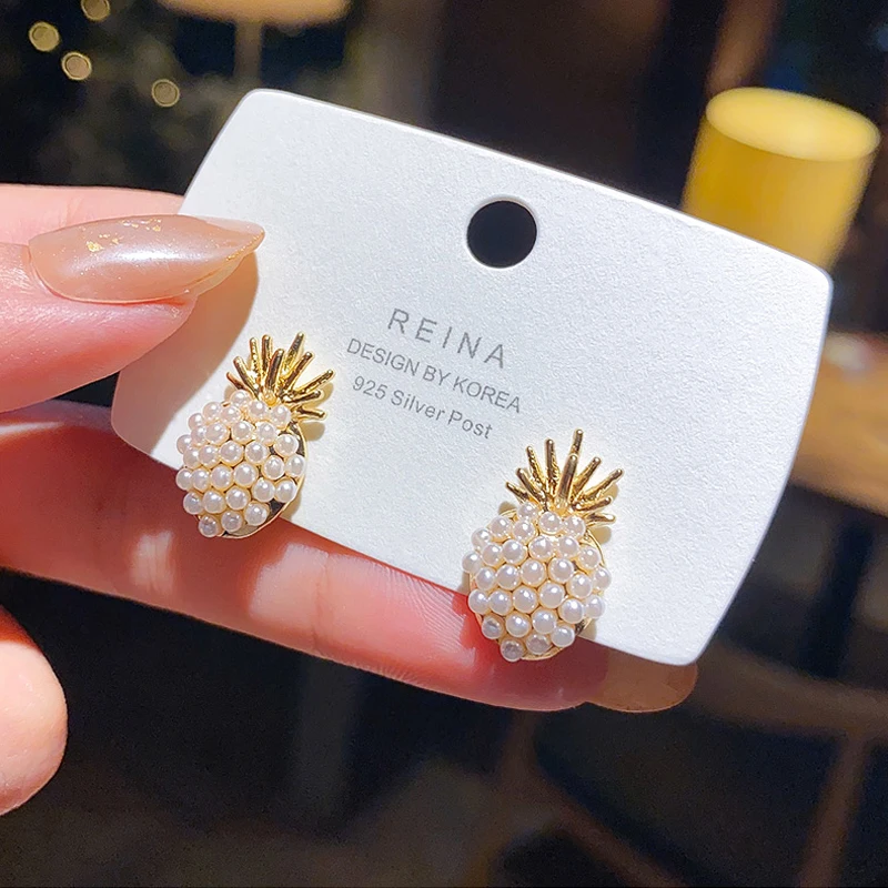 Модные геометрические жемчужные серьги, женские классические серьги-гвоздики с ананасом и жемчугом, женские модные серьги, Женские Ювелирные изделия, подарок