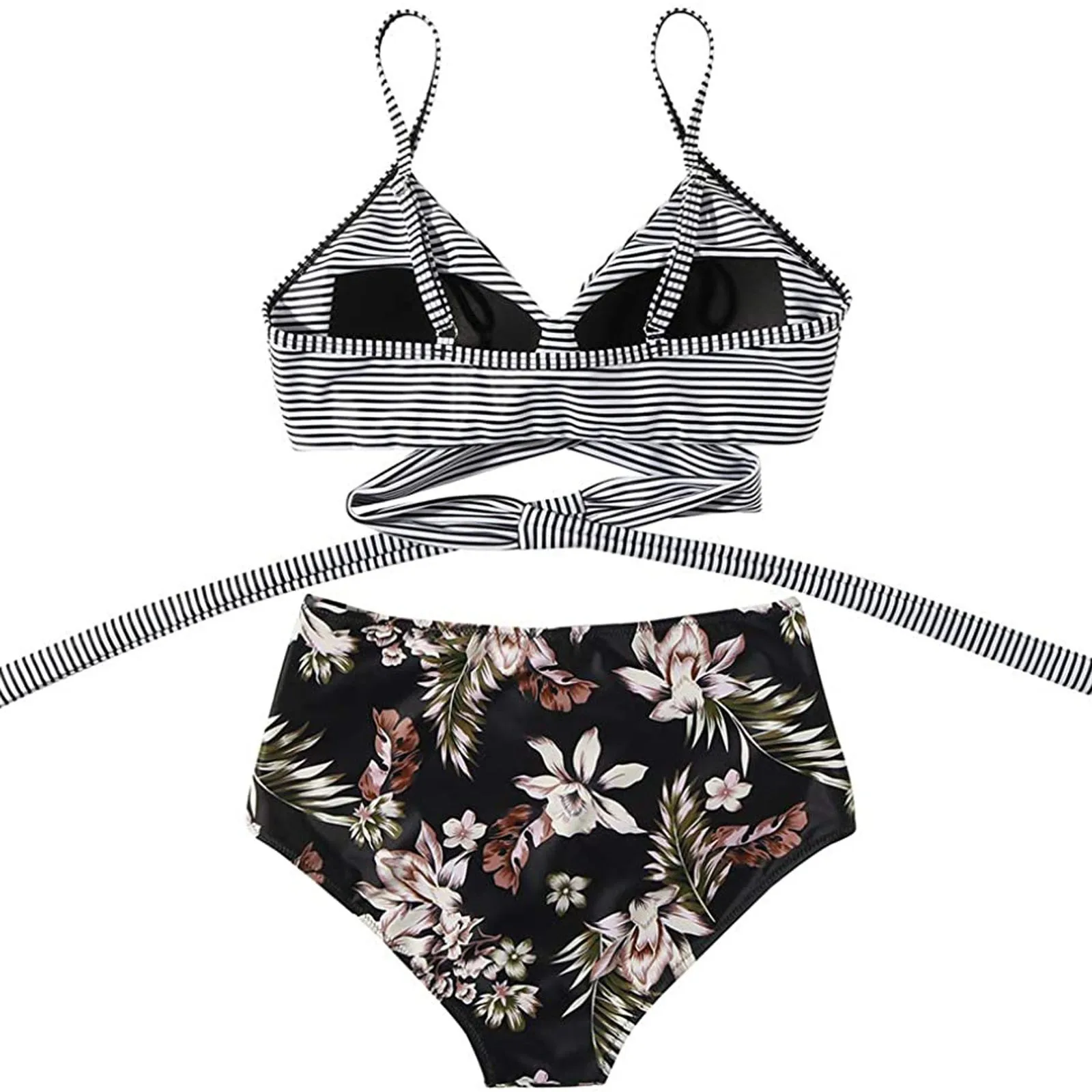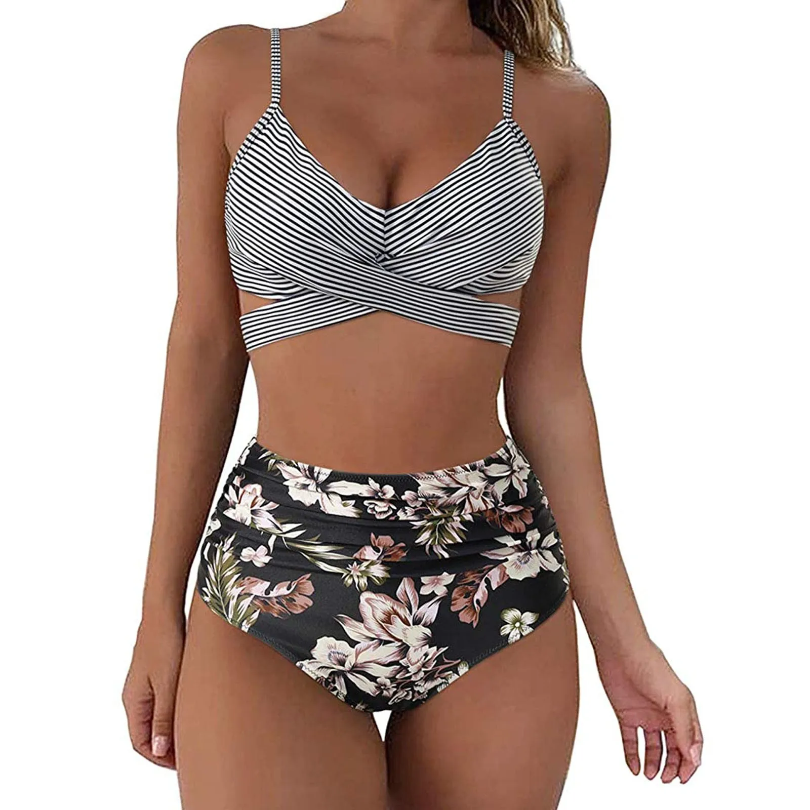 Женский купальник из 2 предметов, женские шорты с высокой талией, раздельные женские купальники, женский купальник с эффектом пуш-ап, верхняя часть