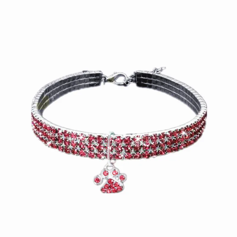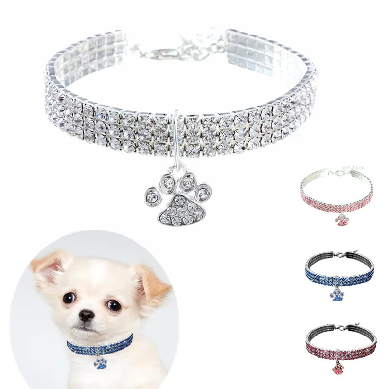 3 ряда украшения Стразы Ошейники для собак лапа подвеска Регулируем...