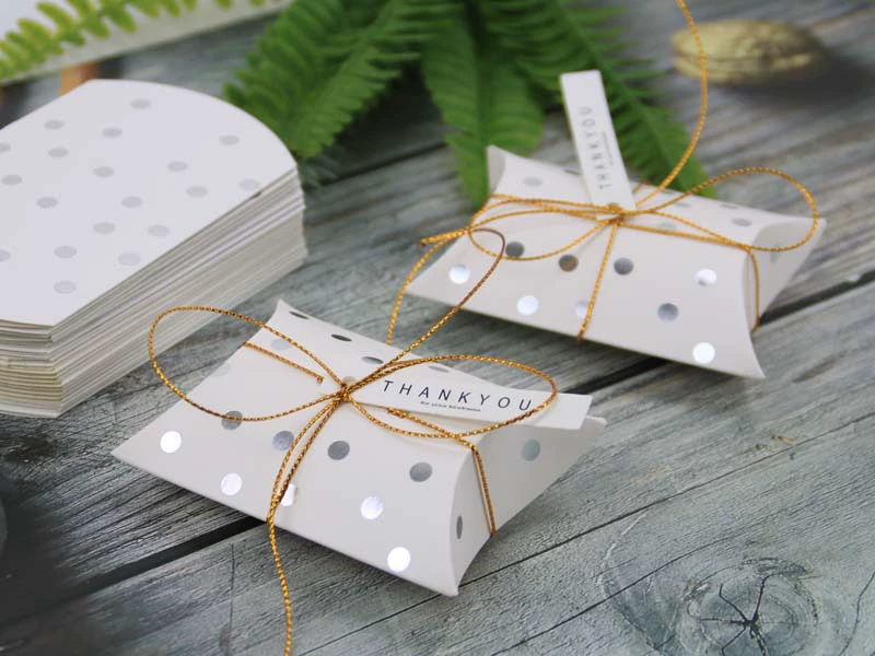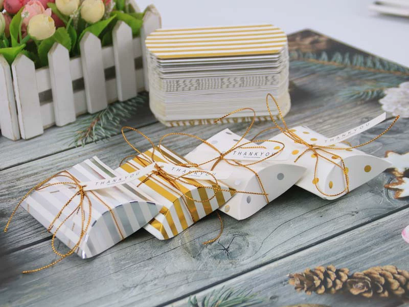 Бумажная коробка для конфет в форме подушки, оптовая продажа, подарочные упаковочные коробки, пакеты для сахара, Рождественская коробка, товары для свадебной вечеринки с лентой