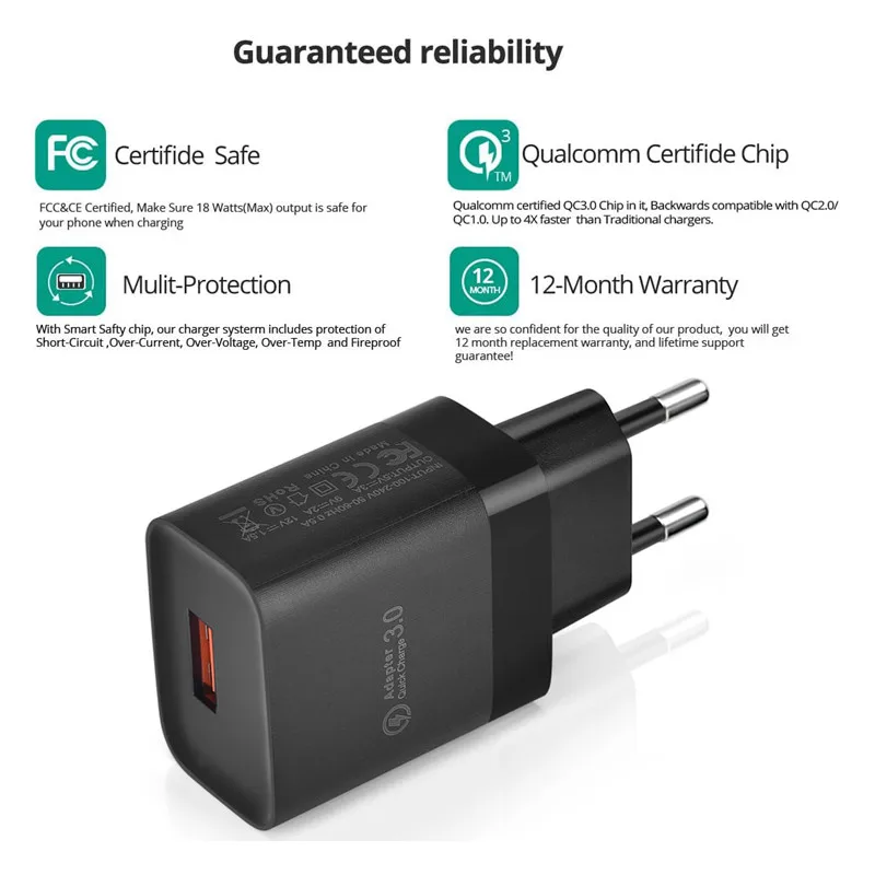 18 Вт Usb для быстрой зарядки Quick Charge 3,0 универсальное настен...