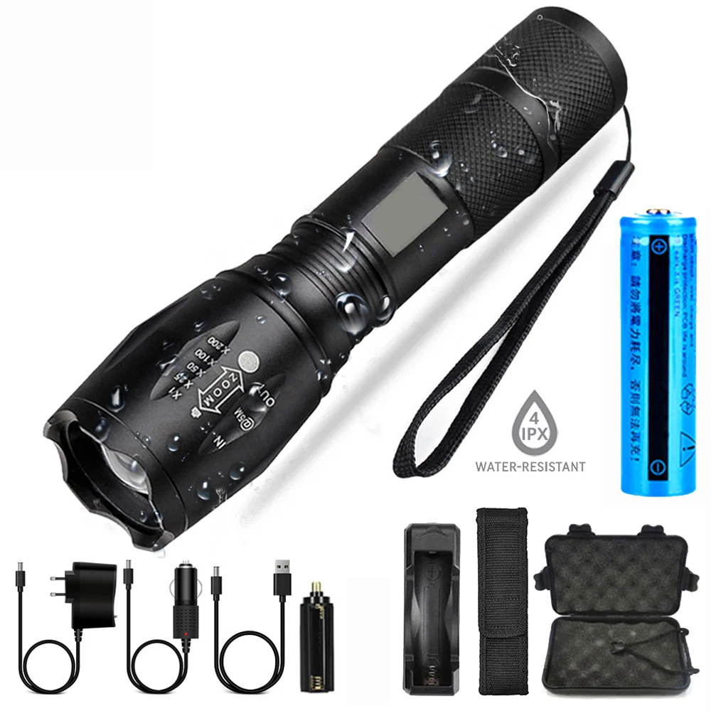 Светодиодный фонарикКоличество: 1 шт.Светодиодный излучатель: T6, L2, V6Режим: 5 режимов (высокий-средний-низкий-SOS-Стробоскоп)Срок службы: 100000 часовЦвет: черныйИзлучаемый Цвет: белый светильникОбъектив: выпуклая линзаМатериал корпуса: прочный авиационный алюминийАккумулятор: 1x18650 / 3 x AAA (необходимо приобрести аккумулятор 18650, батарея AAA не входит в комплект)Зарядное устройство: Вход: AC110-220V 47-63 ГцВыход: 3,7 V; 450 мА-чКачество батареи: 1 шт.Материал: литий-ионныйБатарея Напряжение: 3,7 VЕмкость аккумулятора: 1200 мАч (реальная емкость, отсутствие фальсификации)