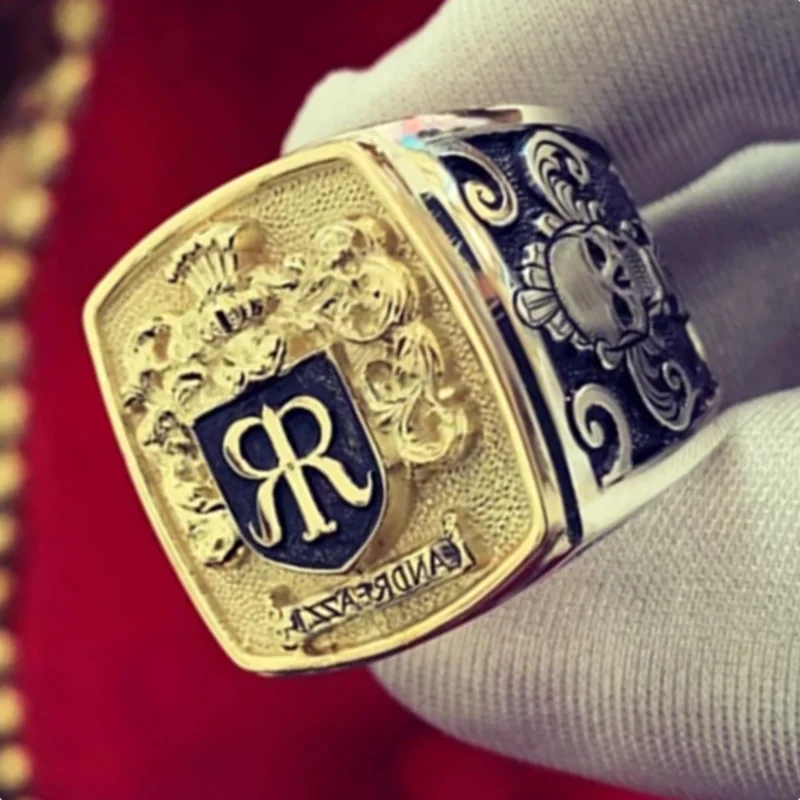 Новинка; Лидер продаж продажи золотые буквой R метал "," панк "Одежда высшего качества в готическом стиле, кольцо с черепом Для мужчин байкеров вечерние, ювелирное изделие, подарок