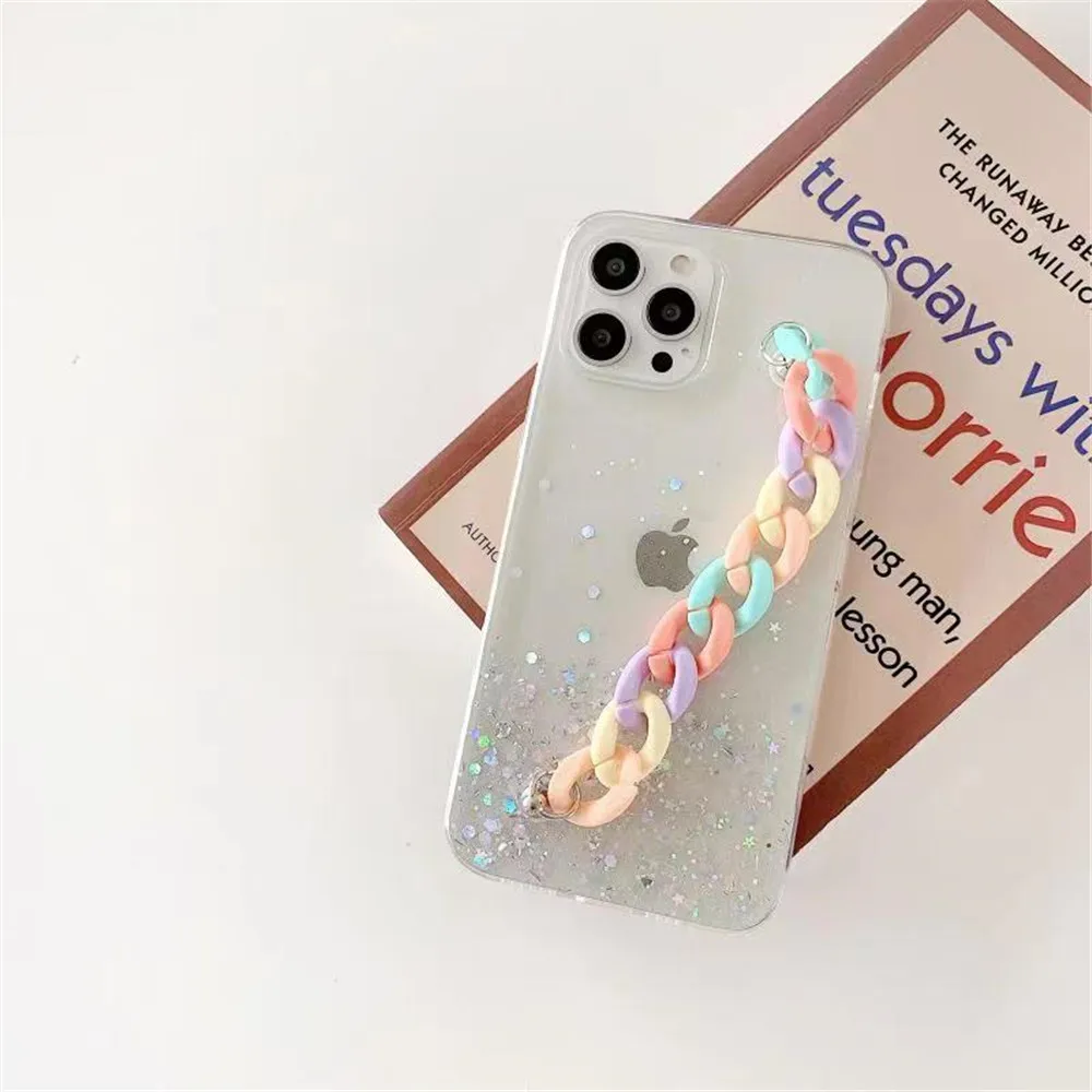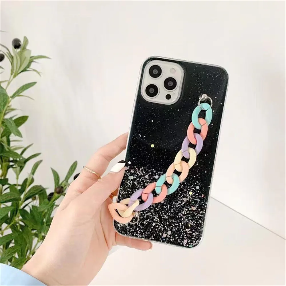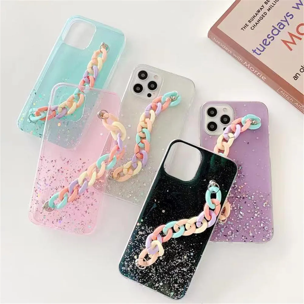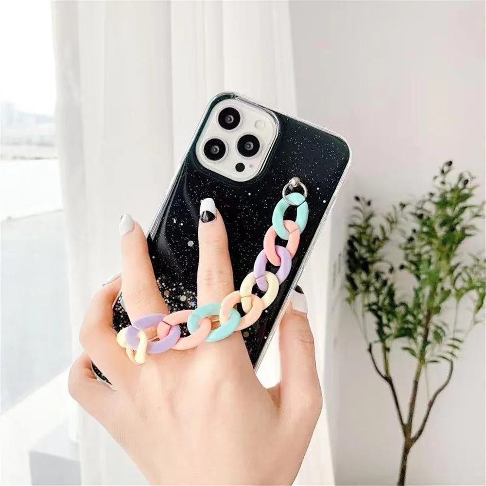 Блестящий Радужный Браслет со звездами, чехол для телефона Samsung S21 Ultra S20 FE S10 S9 S8 Puls Note 20 10 9 8, мягкая задняя крышка с ремешком на запястье