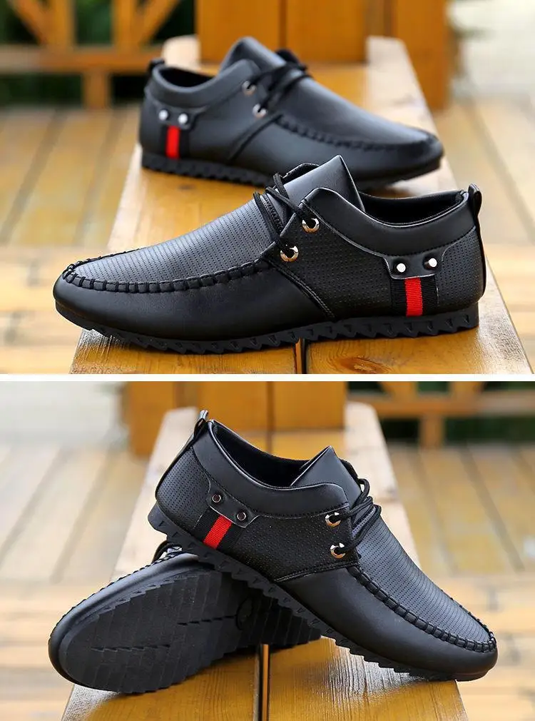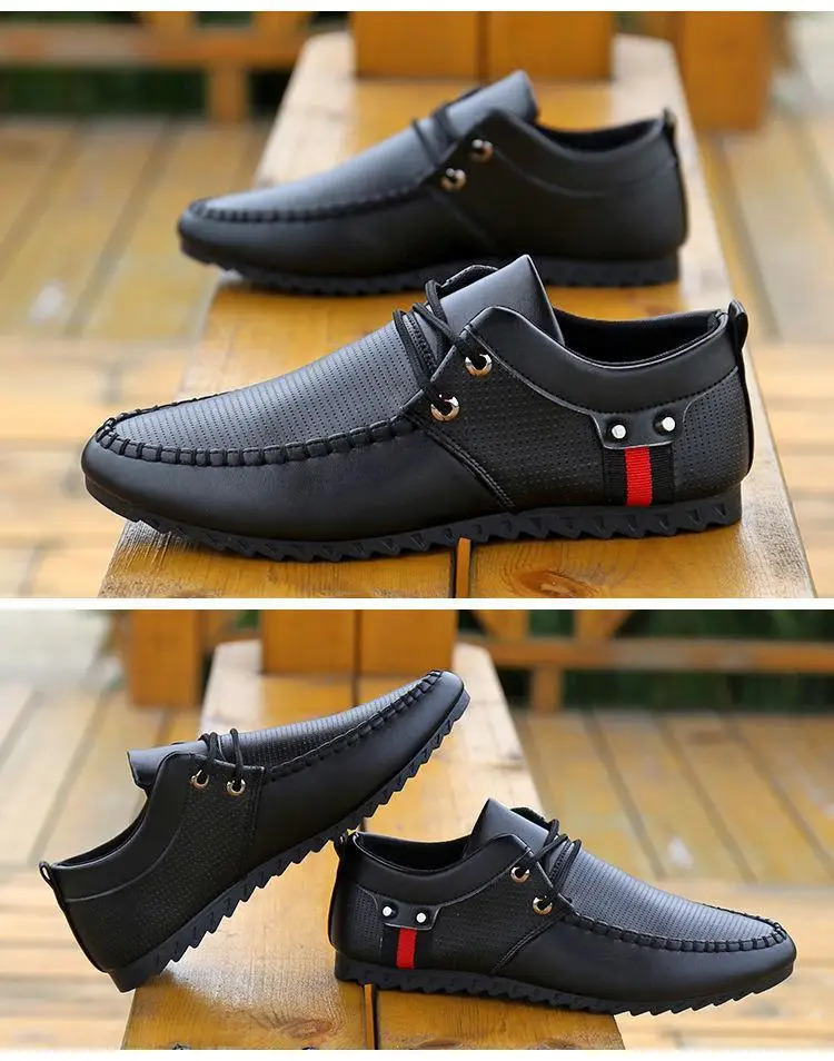 Туфли мужские из натуральной кожи, дышащие, черные, для вождения