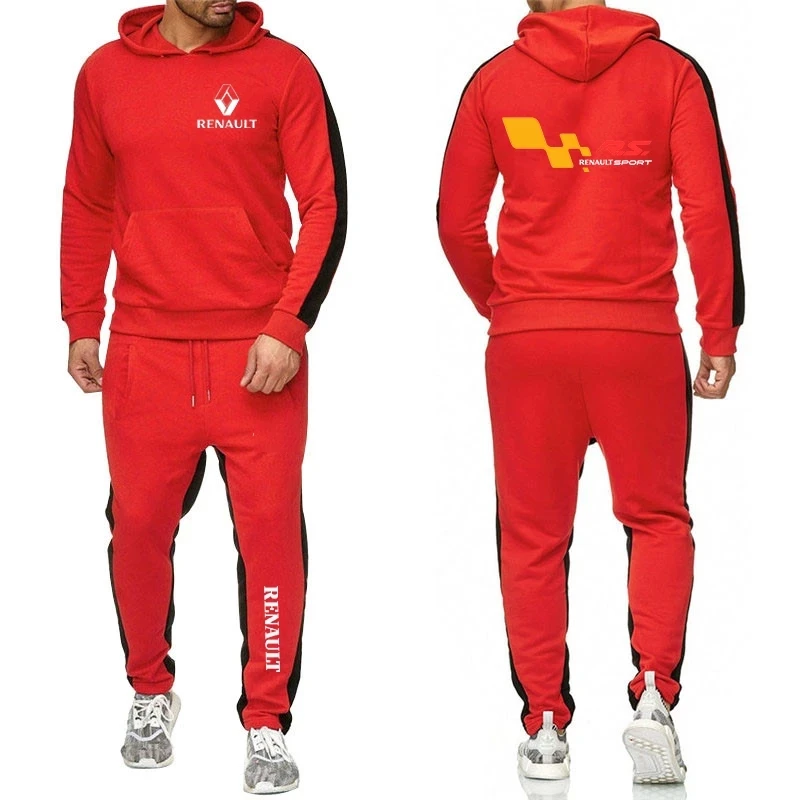 Новинка Renault's Sport R.S. Спортивная одежда из 2 предметов, Мужской свитшот с капюшоном + брюки, пуловер, спортивный костюм с капюшоном, повседневный мужской костюм