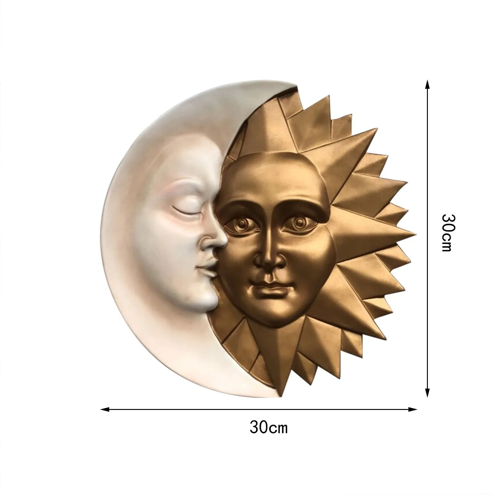 Скульптура высокого качества ручной работы с использованием настоящего щебня, скрепленного прочной дизайнерской смоляной, наша скульптура на стене от Солнца и Луны расписана вручную в искусственном золоте и оттенках слоновой кости