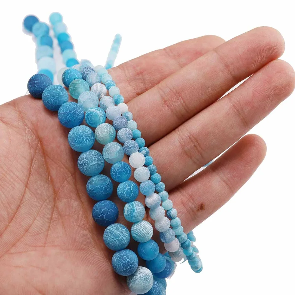 Синий Натуральный Камень Бисер Мороз трещины Мечта Огненный Дракон вен с большим отверстием для собственноручного изготовления украшений 1 прядьлот 4681012 мм