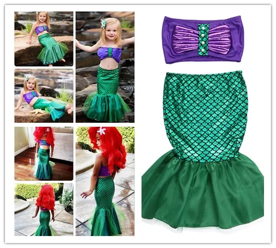 Купальник-бикини для девочек, Топ без бретелек, длинная юбка с хвостом русалки, лето От 2 до 7 лет