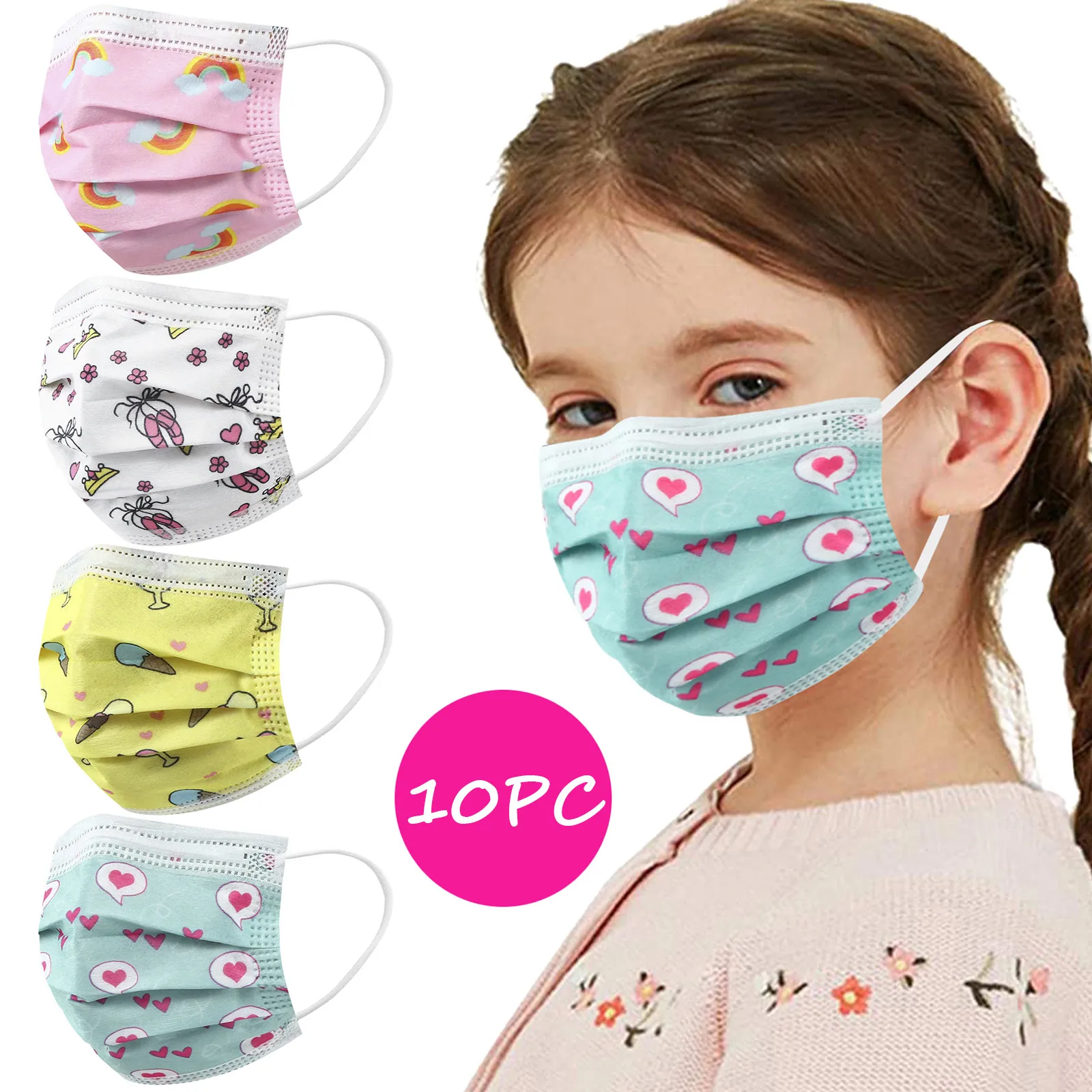 Маска Защитная одноразовая ветрозащитная с мультяшным принтом, 50 шт.