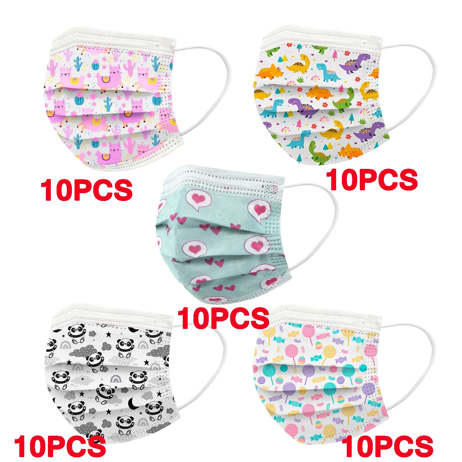 10 шт., одноразовые маски для лица с рисунком кошки и динозавра