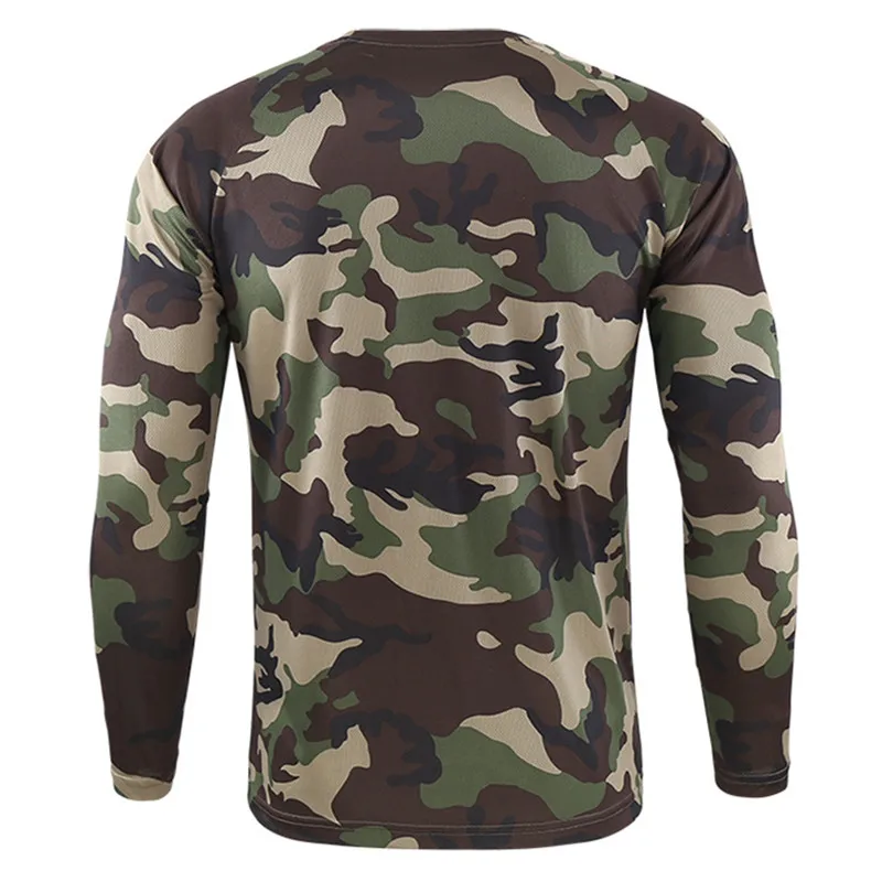 Футболка мужская тактическая быстросохнущая, камуфляжная дышащая майка с длинным рукавом для фитнеса, уличная боевая рубашка армии США в стиле милитари