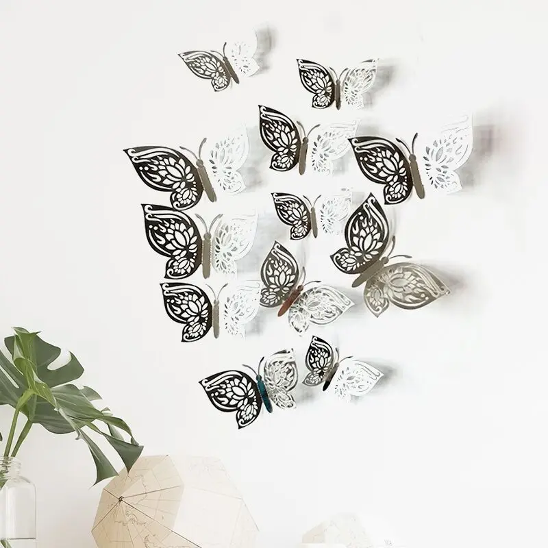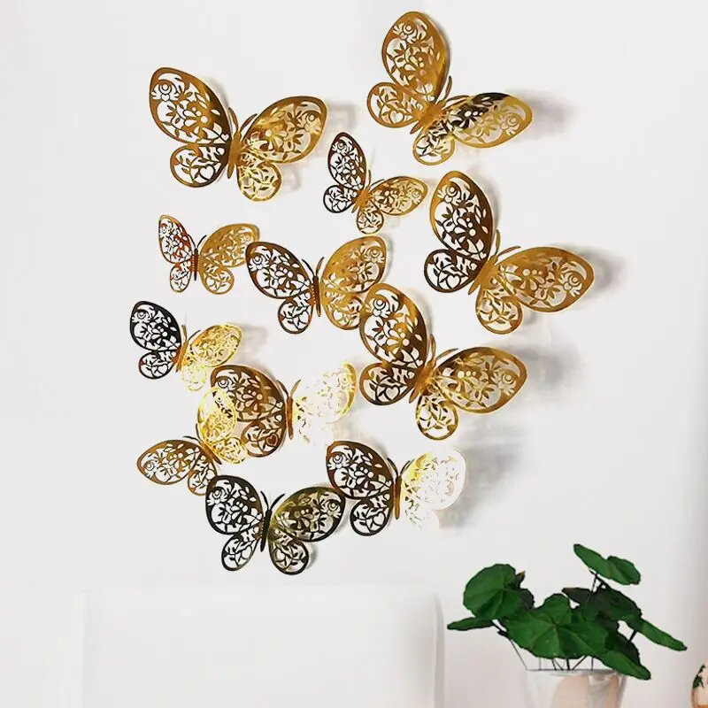 12 шт.компл. 3D настенные наклейки-бабочки, декоративные полые бабочки для девочек, комнат, домашние аксессуары