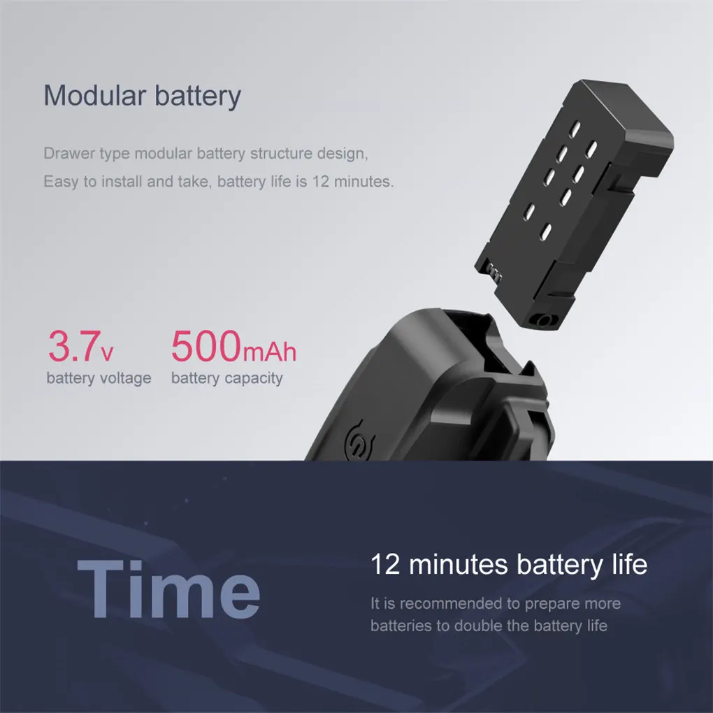 Описание:Мини-Дрон имеет складные рукоятки дизайн, маленький размер, легко носить с собой, встроенный 3,7 V 500 мА/ч, модульная батарея, просты в установке и принять.В безголовом режиме нет необходимости регулировать положение самолета перед полетом, имеет функцию режима удержания высоты, полет стабильный.Детский самолет с дистанционным управлением имеет функцию взлета/посадки/возврата одной кнопки, может легко найти свой путь домой с помощью функции возврата одной кнопкой.Есть 4K или 1080P Пиксельная камера опционально, Дрон может снимать Потрясающие фотографии и видео с неба.Есть вверх/вниз, вперед/назад, влево/вправо, боковой f светильник, светодиодный светильник, Безголовый режим, автоматическая кнопка возврата, режим удержания высоты, Поворот на 360 °, функции WiFi.Спецификация:Материал: АБС-пластик, электронные компоненты.Цвет: черный.Гироскоп: 4-осевая машина.Частота: 2,4G.Канал: 4CH.Мотор: матовый без сердечника.Батарея: 3,7 V 500 мА/ч, Батарея (все указанные аккумуляторы входят в комплект поставки).Мощность передатчика: 3 аккумулятора AAA (не входят в комплект).Режим передатчика: режим 2 (левая дроссельная заслонка).Время полета: около 12 минут.Низкая скорость полета: 2 м/с.Средняя скорость полета: 4 м/с.Высокая скорость полета: 7 м/с.Время зарядки: 60 минут.Дистанция RC: 80-100 м.Расстояние FPV: 15-30 м.FPV: WiFi.Разрешение: 500W-1080P, 4K. (Опционально)Угол обзора камеры: регулируется на 180-90 °.Квадрокоптер Размеры: 18x15x4 см (в разложенном виде); 8x5,5 х 4 см (в сложенном виде).Примечание:Из–за разных компьютерных разрешений может быть небольшое цветовое искажение.Возможны незначительные погрешности из-за различных ручных измерений.Посылка включает в себя:Тип 1:1 Дрон.1 пульт дистанционного управления.1x3,7 V 500 мА/ч, Батарея.1 x usb-кабель для зарядки.2 запасных нарезки.4 x крышка.1 x держатель для телефона.1 отвертка.1 x руководство.1 х органайзер для хранения.