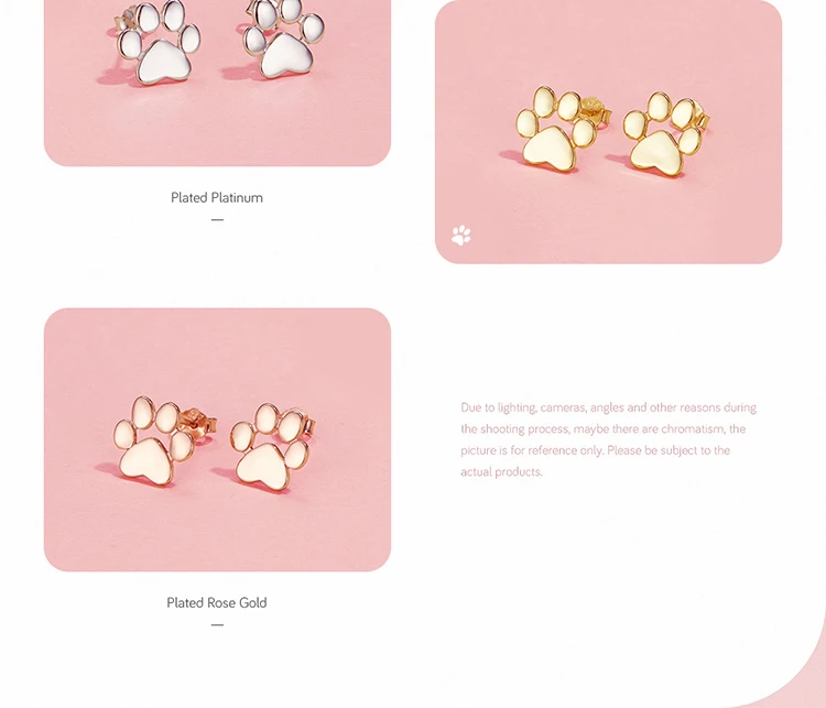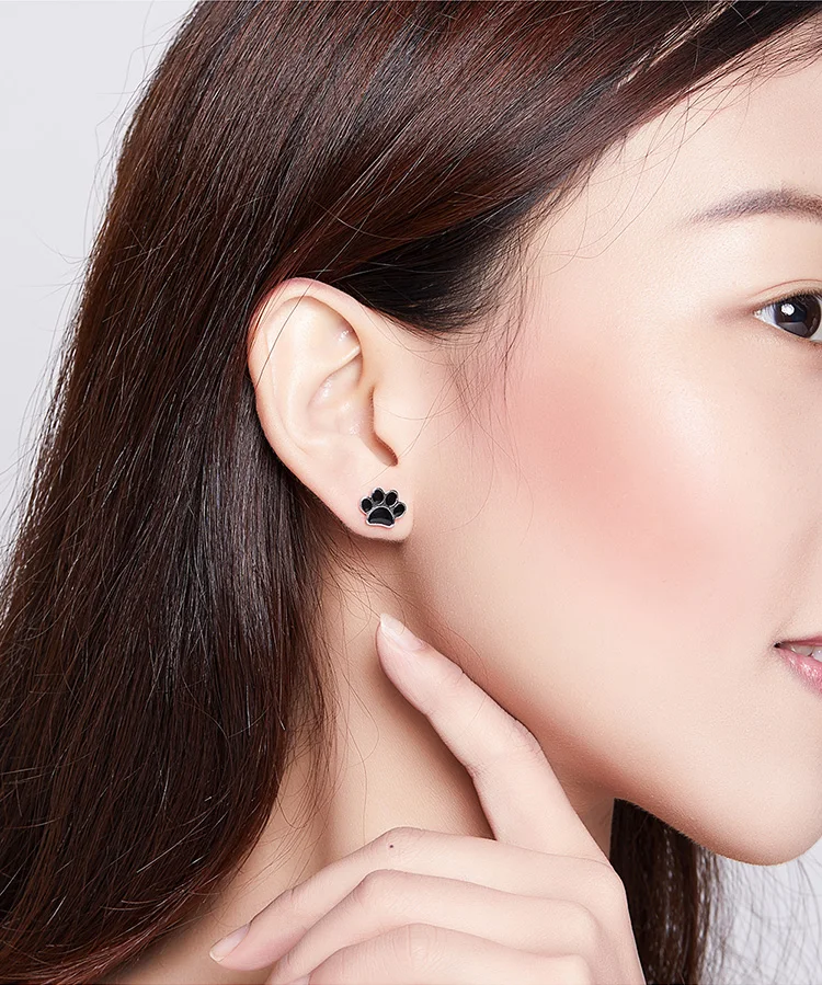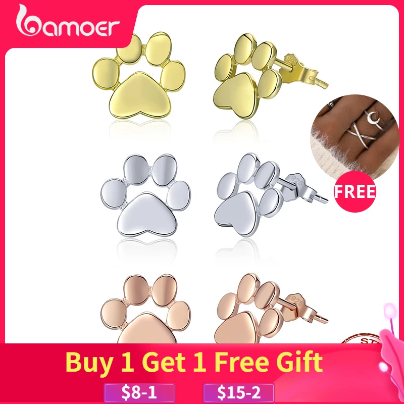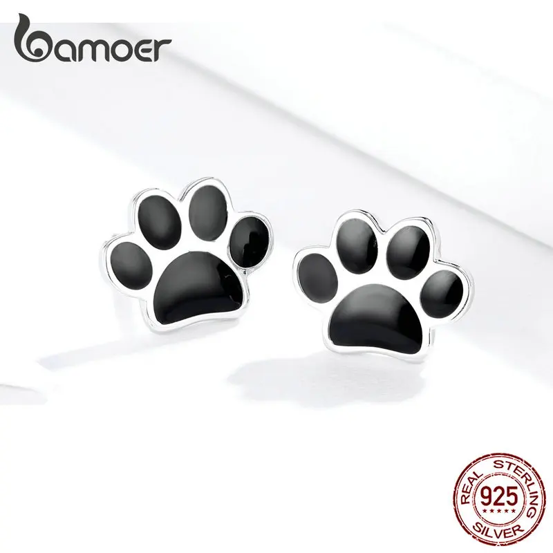 Женские серебряные серьги-гвоздики BAMOER, в форме кошачьей лапы, следы, подарок на день Святого Валентина, 925 пробы