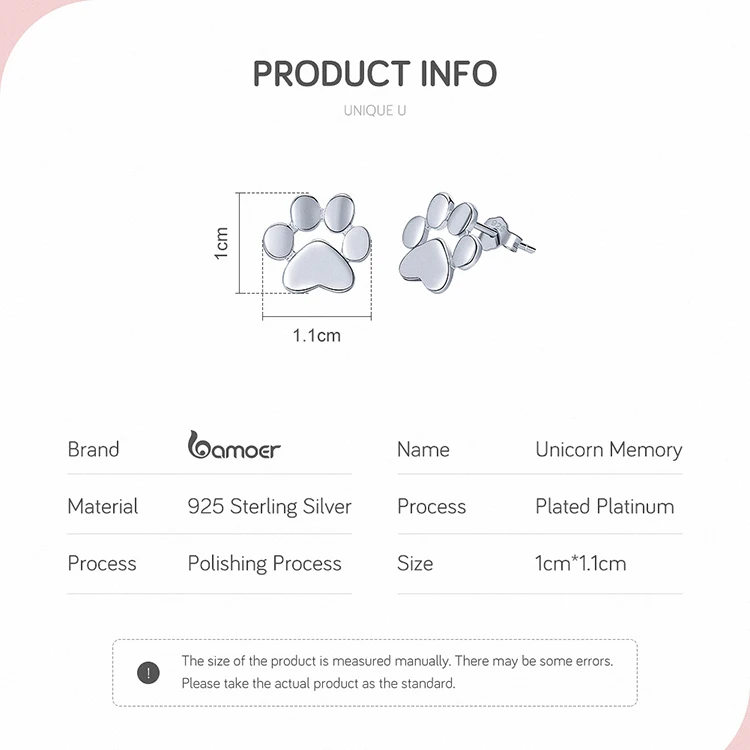 ❤【Описание】вдохновленный милыми рисунками, кольцо дает смысл, который любит домашних животных, пожалуйста, примите это кольцо в качестве свидетельства вашей истории с вашим милым питомцем.❤【Спецификация】 1*1,1 см; Вес: 1,6 г.❤【Материал 】 925 пробы серебра и покрытой платиной, эти серьги не содержат никель, свинец, не содержит кадмия, гипоаллергенны. Гарантия качества, приятный для кожи, удобный и удобный в носке, не вредный для здоровья.❤【Для подарка 】 1 пара сережек и 1 шт Изысканная Подарочная коробка, которая является идеальным подарком для мамы, дочери, дочери, тети, сестры, друзей.❤【BAMOER YOU】 если вы удовлетворены bamoer ювелирных изделий, желаю вам оставить красивый обзор, и мы отправим вам один большой купон или хорошие украшения в подарок!