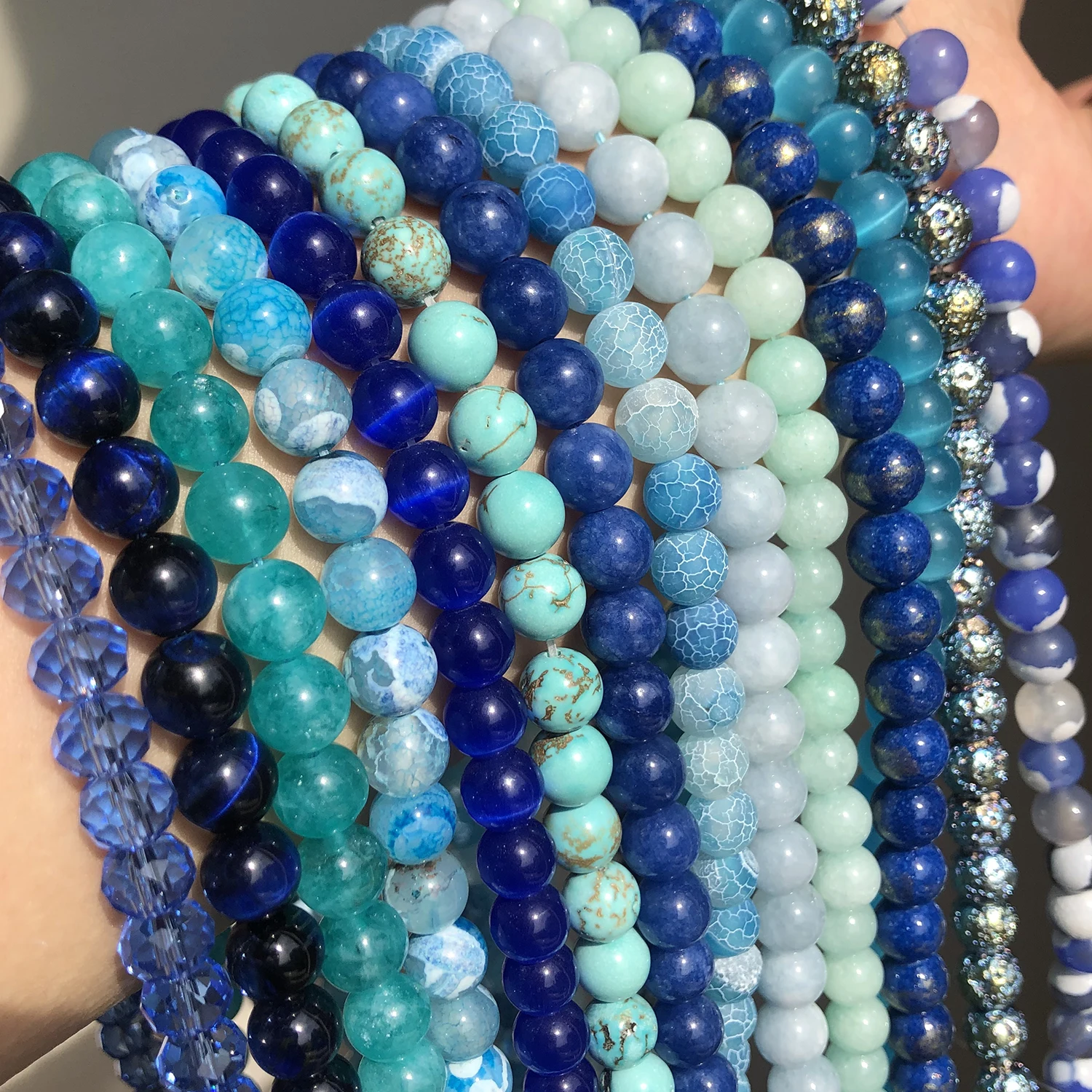 Натуральные круглые бусины из синего агата, нефрит Бирюзовый Рондель, кристалл, свободный, камень бусины для изготовления ювелирных изделий оптом, Браслет сделай сам 15 дюймов