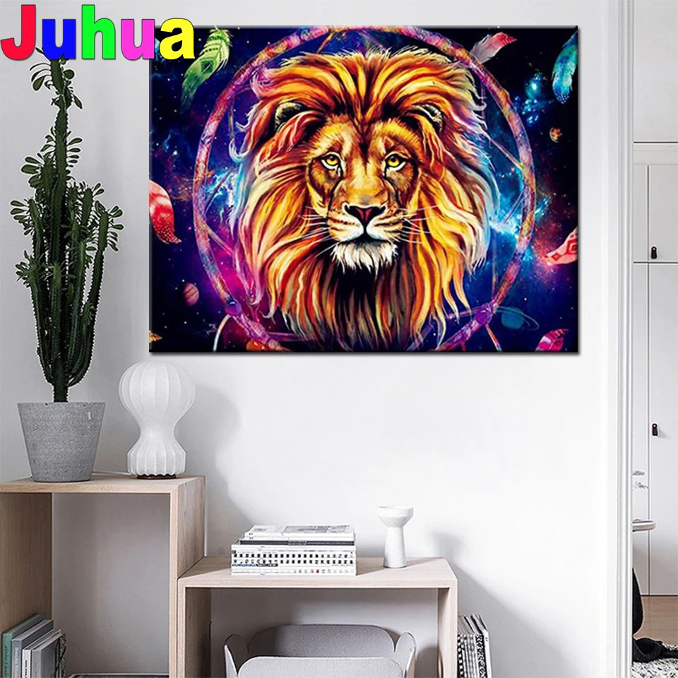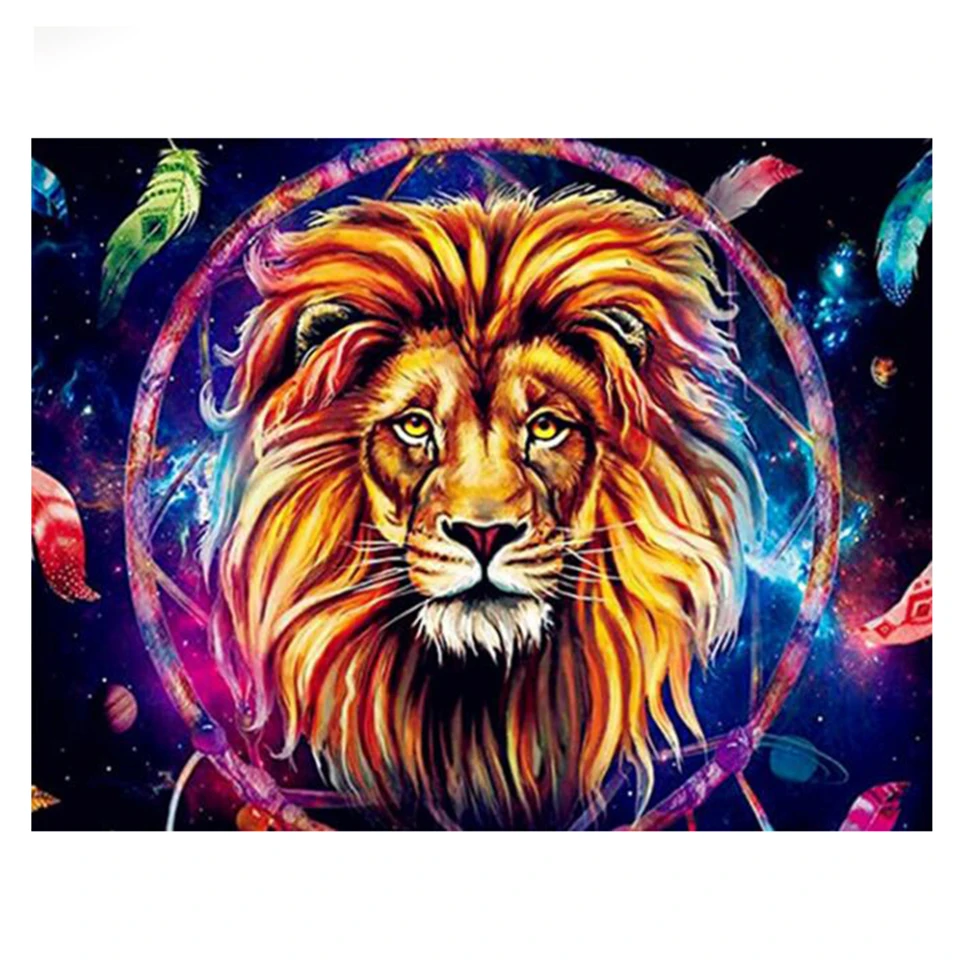 Diy Алмазная картина льва король перо daimond вышивка животное 5d полный круглый дрель королева инкрустированный узор мультфильм детский подарок,