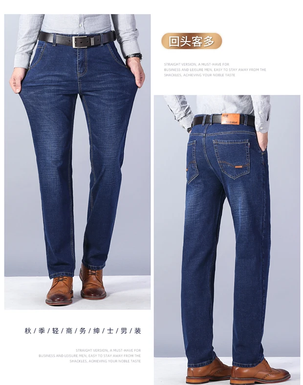 2021 Новые мужские джинсы, деловые повседневные эластичные удобные прямые джинсовые брюки, мужские Брендовые брюки высокого качества
