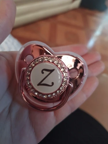 Соска-пустышка детская, серебристая, 26 букв, Со стразы