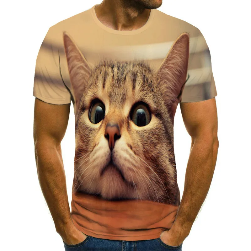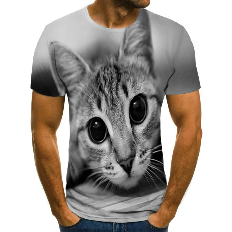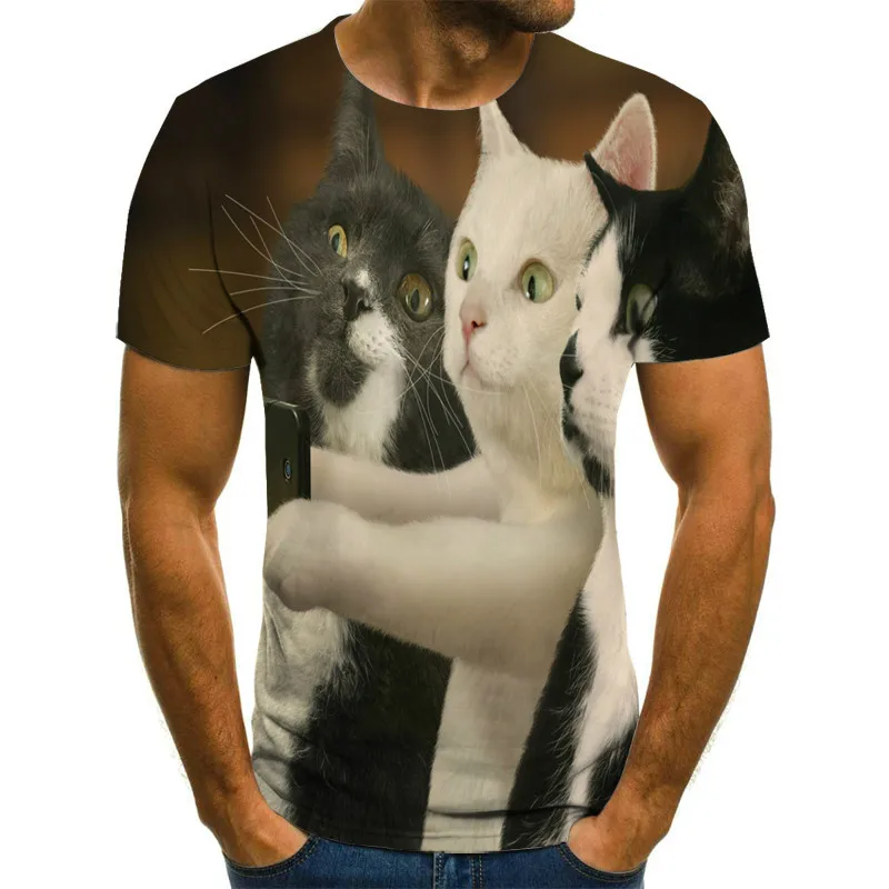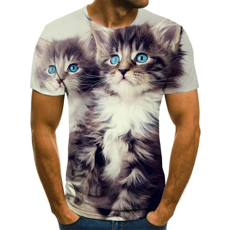Летняя воздухопроницаемая футболка с 3D принтом кота, повседневный топ с коротким рукавом, Повседневная модная одежда для пары