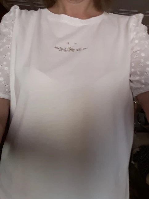 Ог 98 размер xl всегда беру. У разных производителей размеры отличаются друг от друга. Потому приходится совмещать отзывы и таблицу. Футболка в груди и длине подошла, в рукаве немного впритык, так как рукав из ткани. Милая маленькая вышивка. Хотелось, чтобы был не только белый цвет, но и другие для разнообразия.