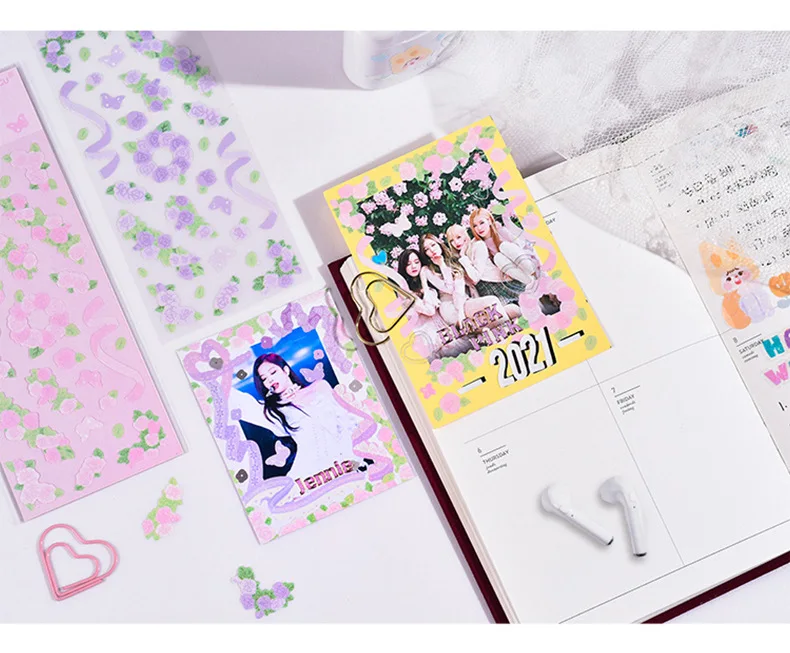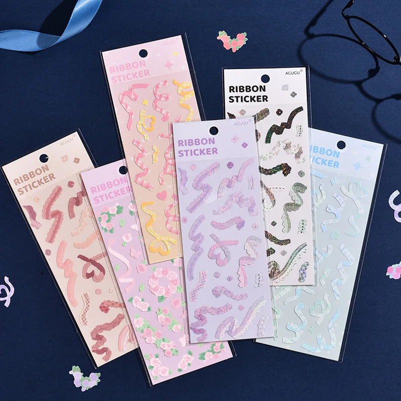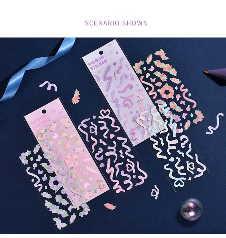 Лента с блестками, кавайная наклейка, цвет, букет роз, милые наклей...