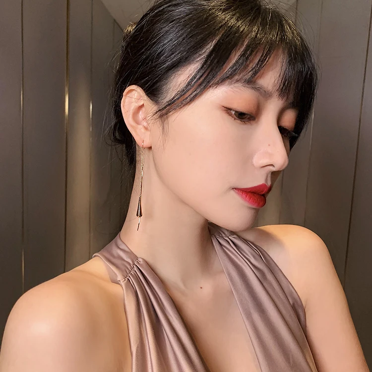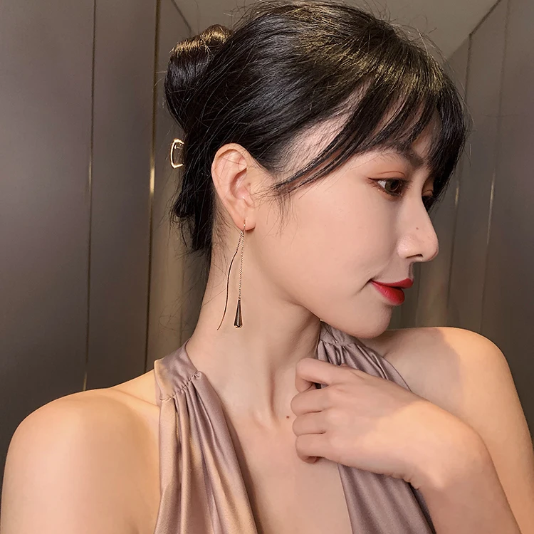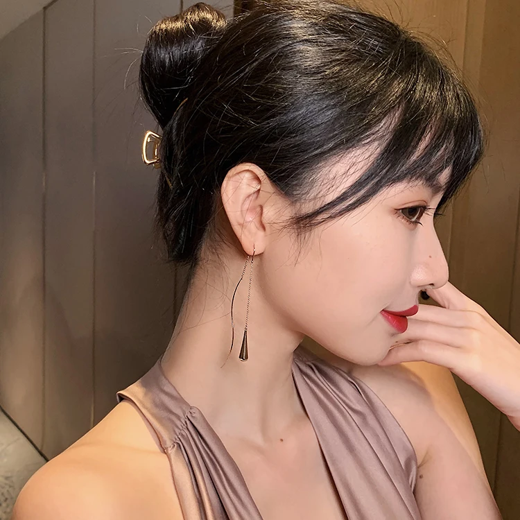Женские металлические серьги-подвески в Корейском стиле, Элегантные Простые геометрические длинные ювелирные украшения для вечеринок и девушек, новинка 2021