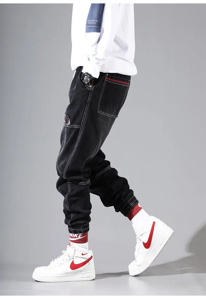 Джинсы мужские в стиле хип-хоп, брюки-карго свободного покроя, штан...