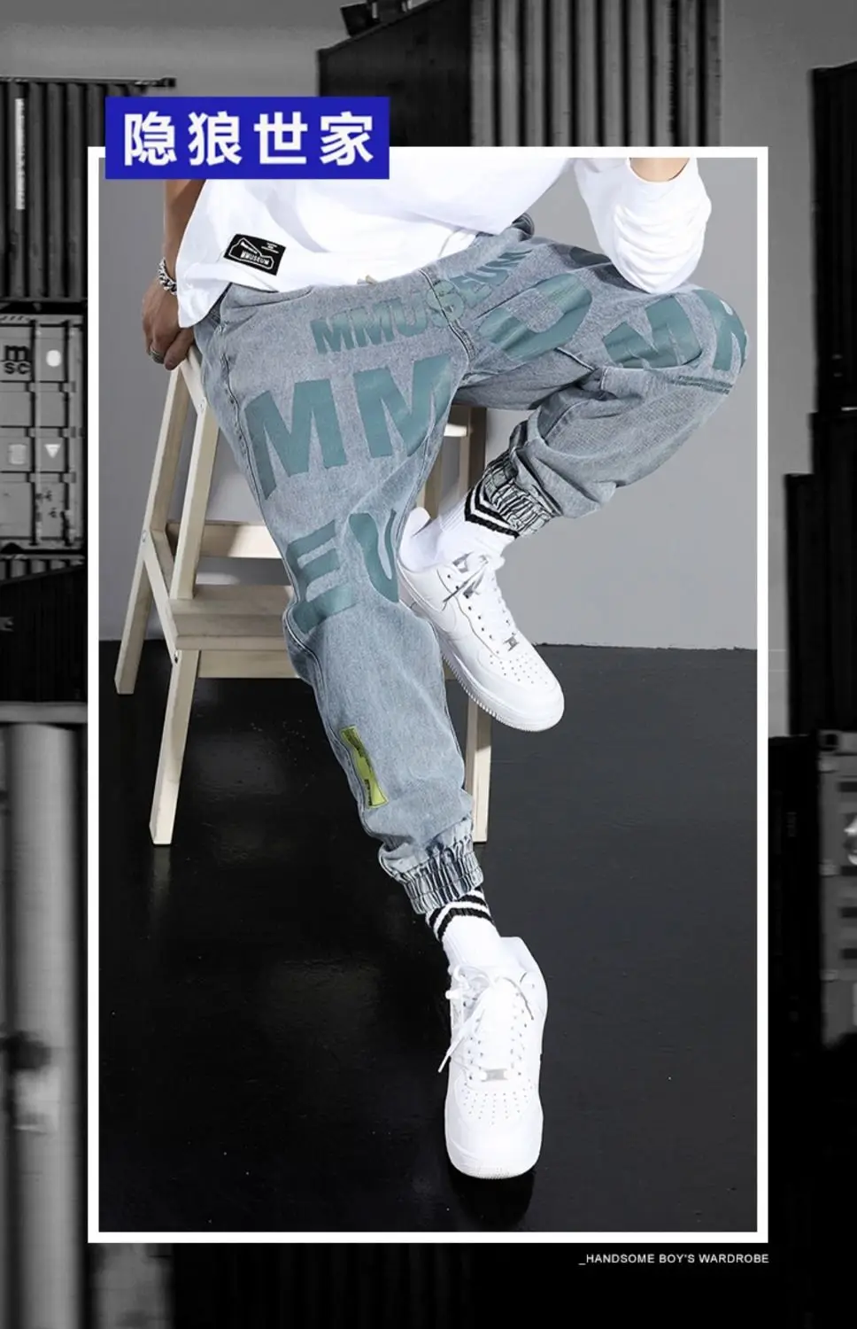 Джинсы мужские с надписью High Street, модные брюки-султанки в стил...