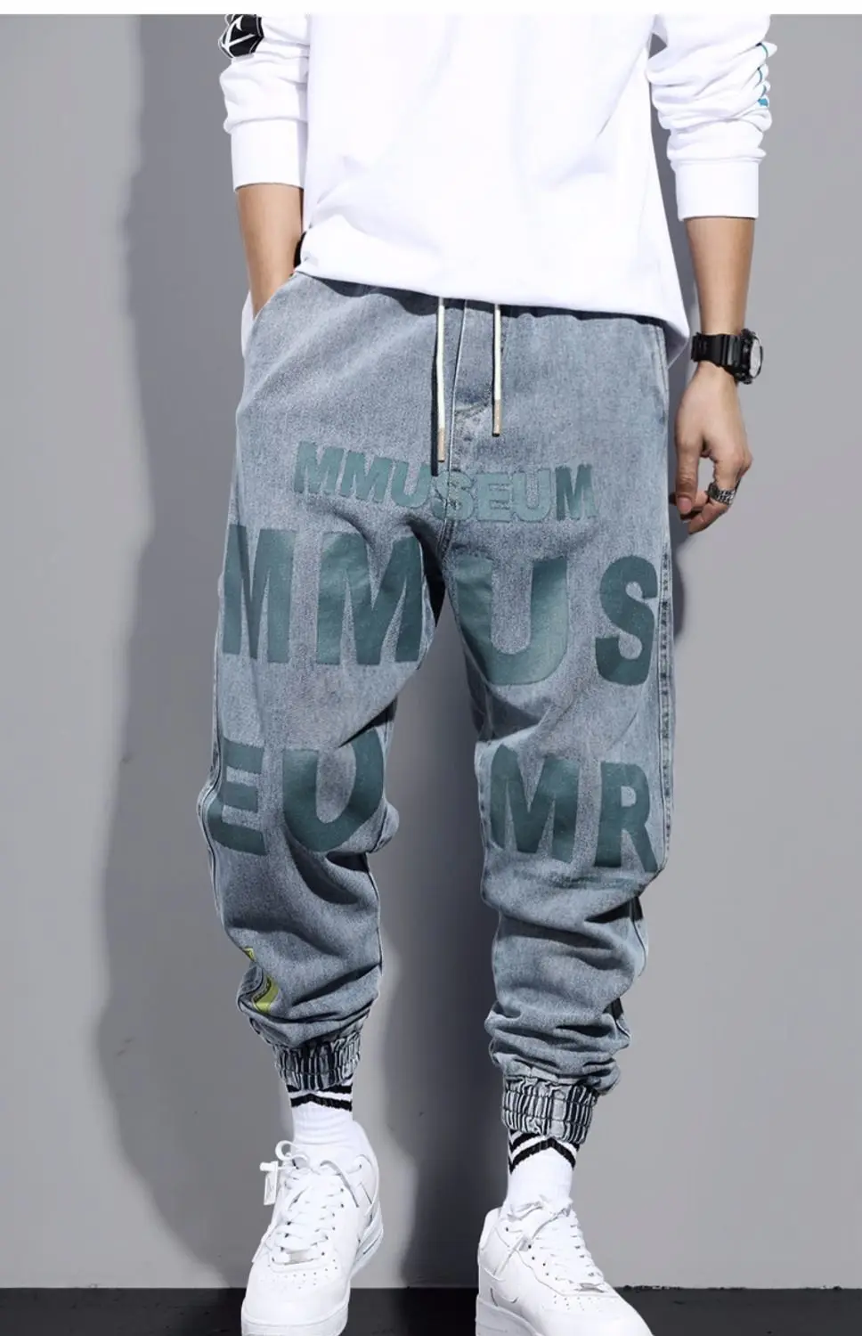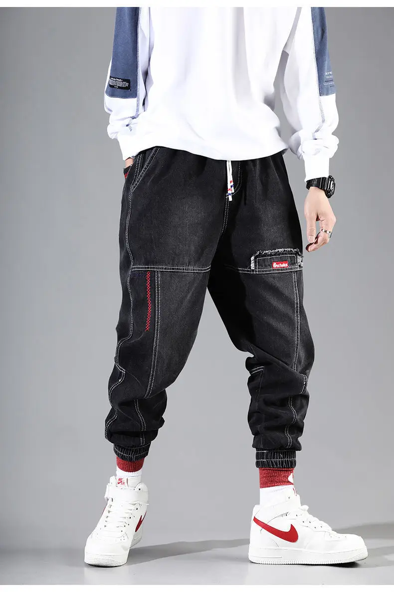 Джинсы-шаровары мужские свободного покроя, джоггеры из денима в сти...