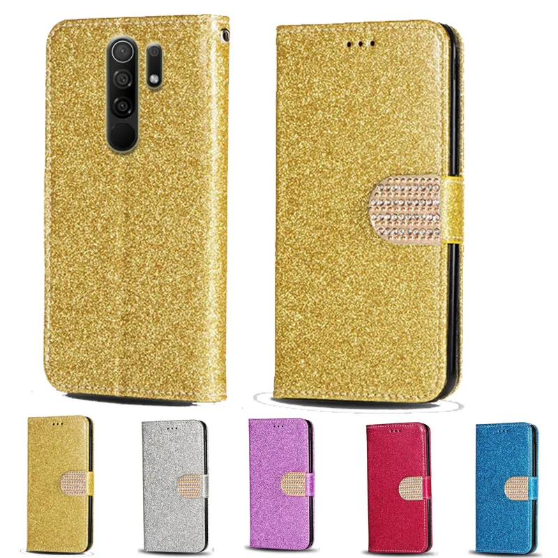 Роскошный блестящий кожаный флип-кошелек с бриллиантами для Xiaomi Redmi 9, чехол для телефона Xiaomi PocoPhone Poco M2, чехол для телефона с отделением для карт