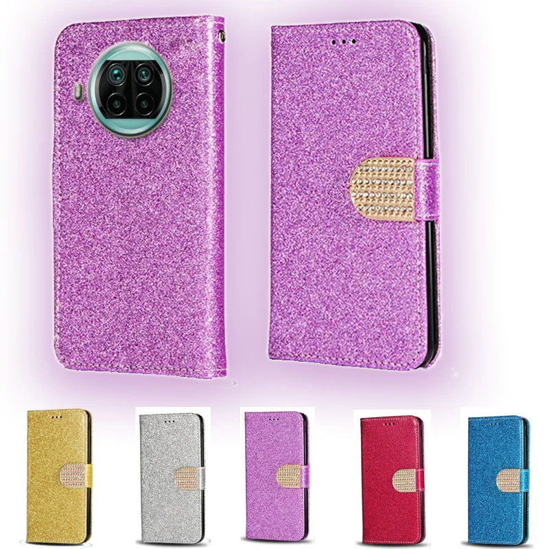 Кожаный флип-кошелек для Huawei Y9a Nova 8i с блестками и бриллиант...