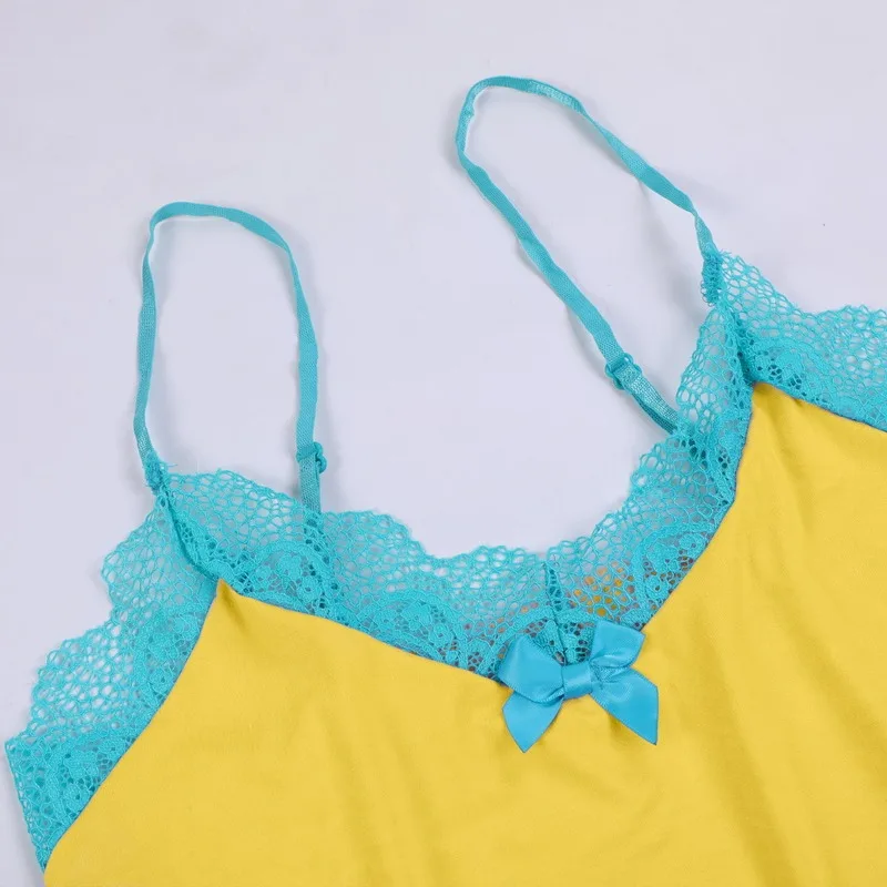 Комплект кружевной пижамы на бретельках без рукавов с бантом Пижама...