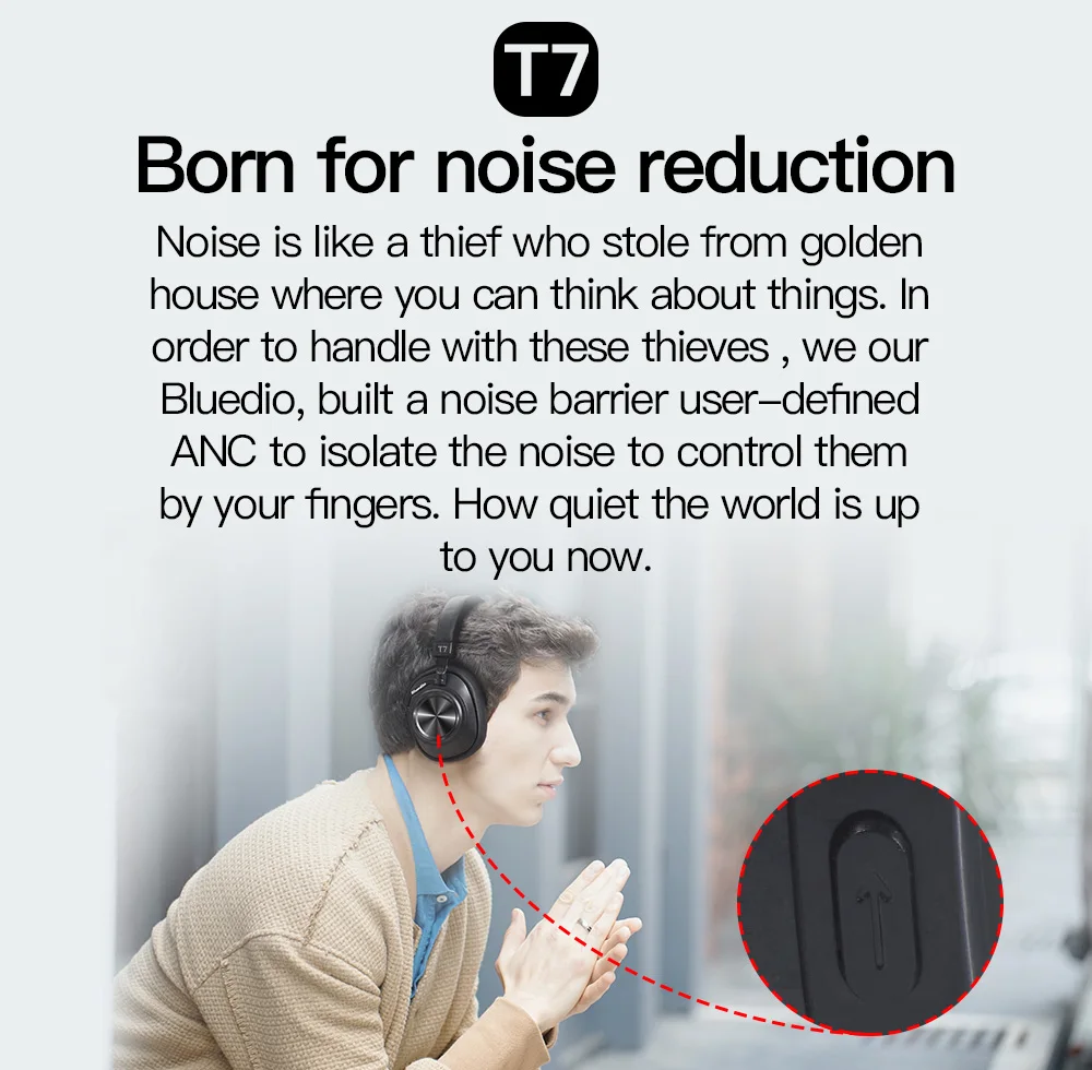 Bluetooth наушники Bluedio T7, настраиваемое пользователем активное шумоподавление, беспроводная гарнитура для телефонов и музыки с распознаванием лица