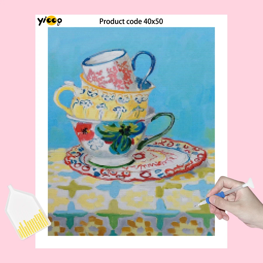 Алмазная вышивка квадратнойкруглой формы, цветная чайная чашка, серия стразы, мозаика, вышивка крестиком, Декор, подарок TY03