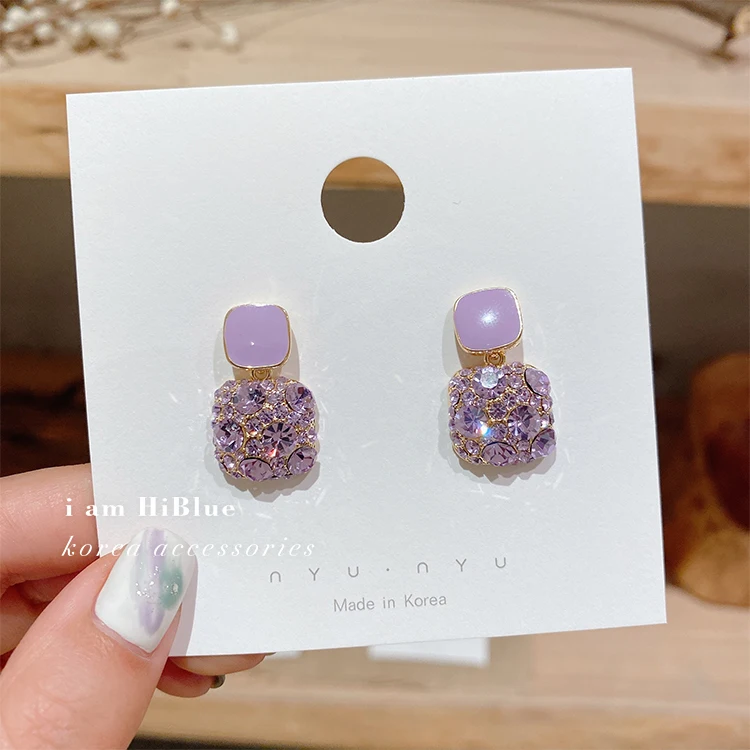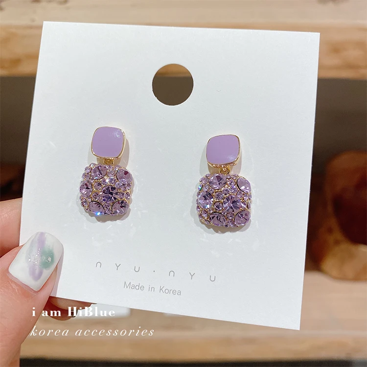 Модные корейские новые фиолетовые серьги 2022, Роскошные блестящие ...