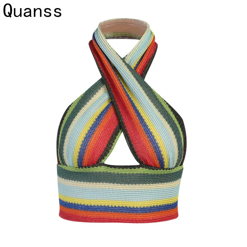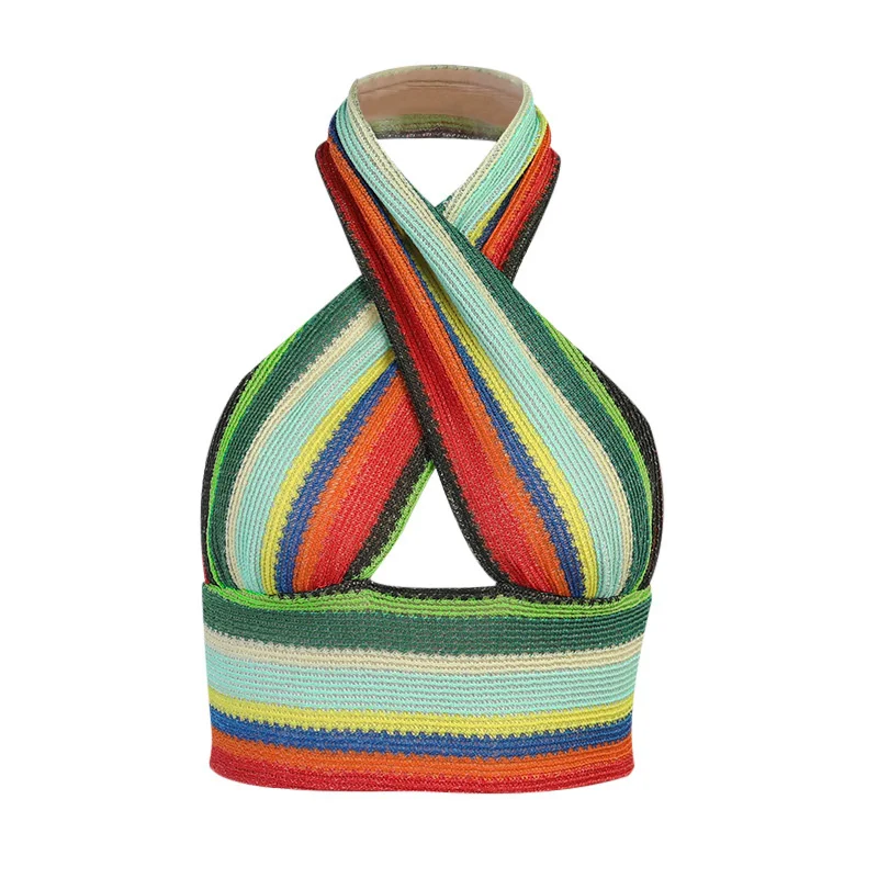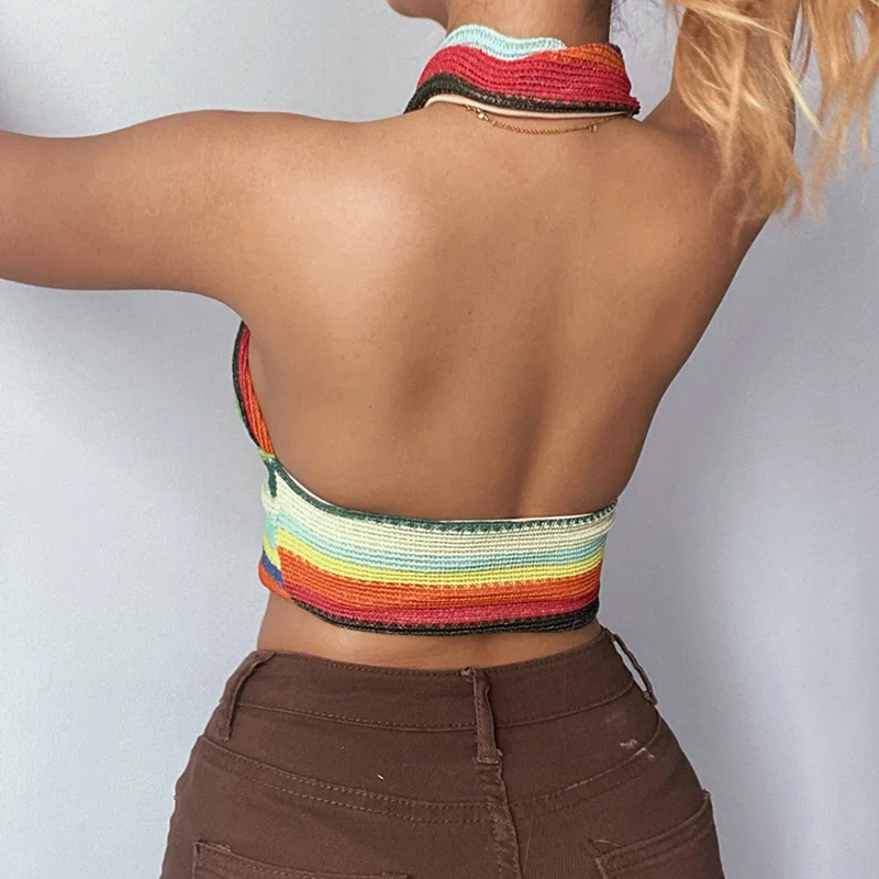 Топ женский трикотажный в радужную полоску, с лямкой на шее
