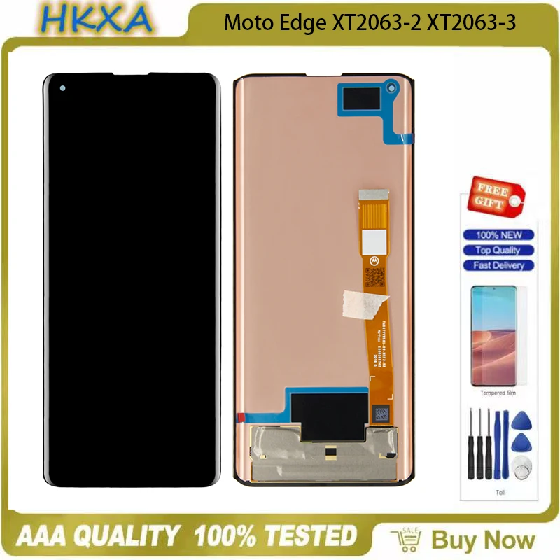 Оригинальный ЖК-дисплей с дигитайзером в сборе для Moto Edge и рамкой телефона XT2063-3, запасные части для черного сенсорного экрана, инструменты