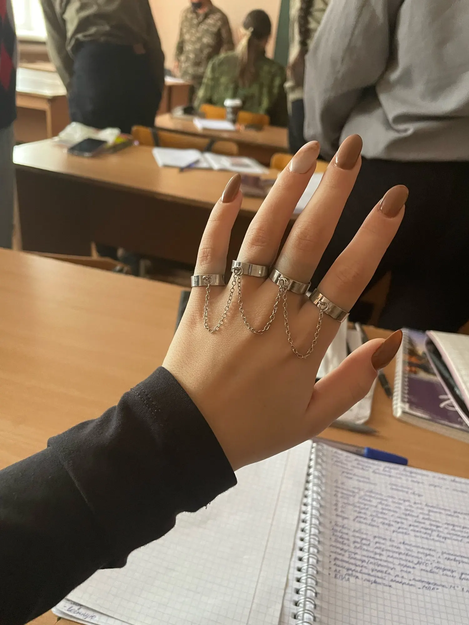 Кольцо многослойное с цепочкой для мужчин и женщин, регулируемое ме...