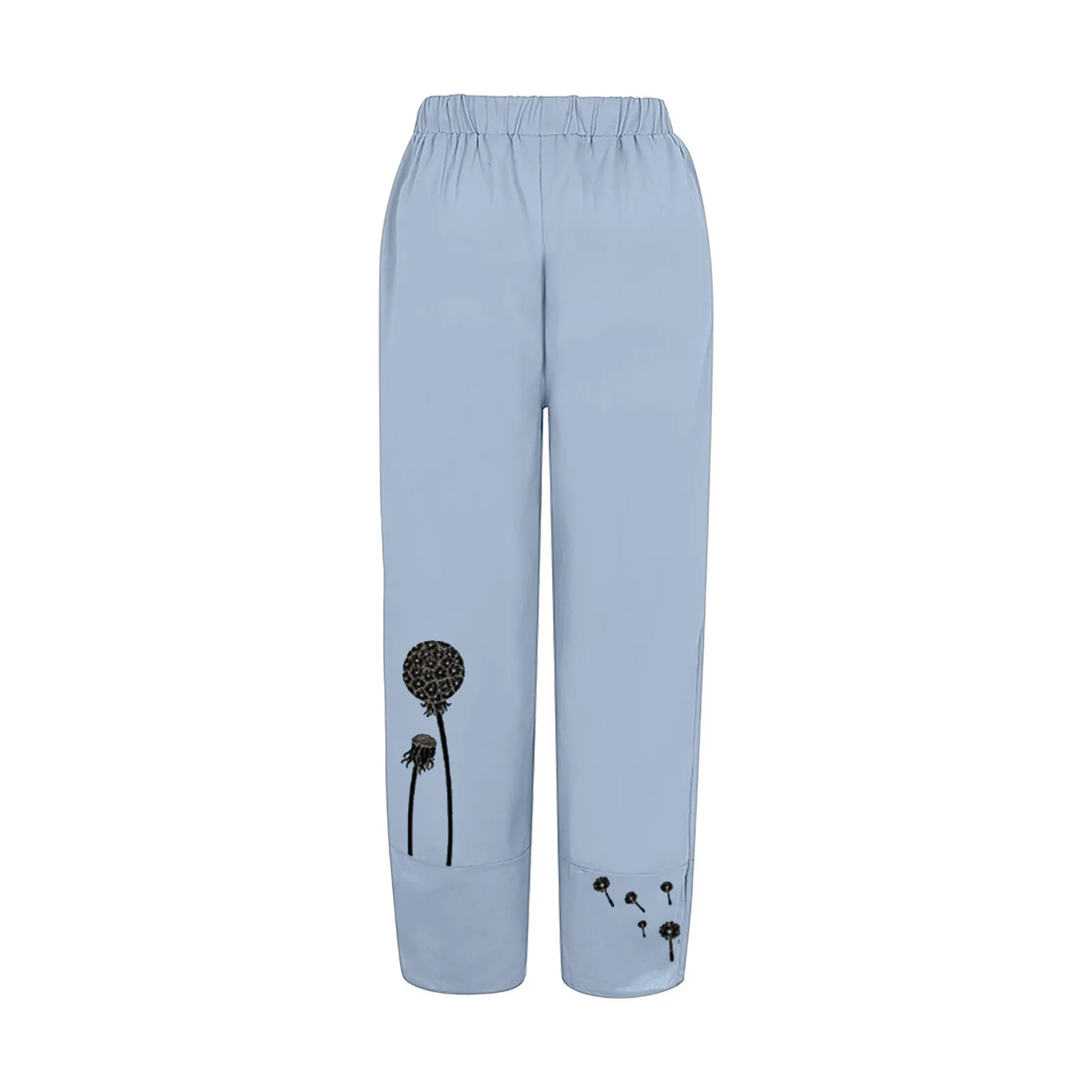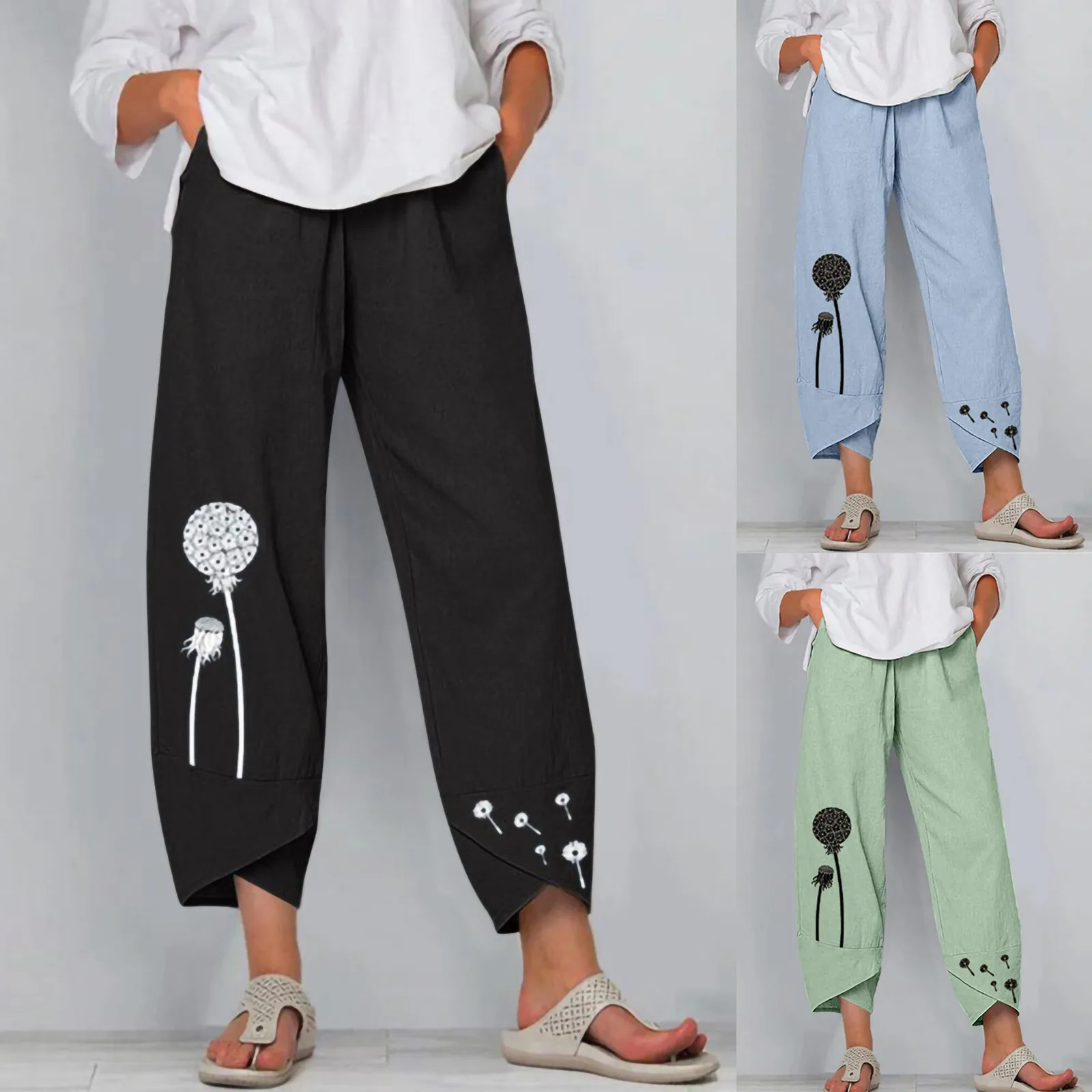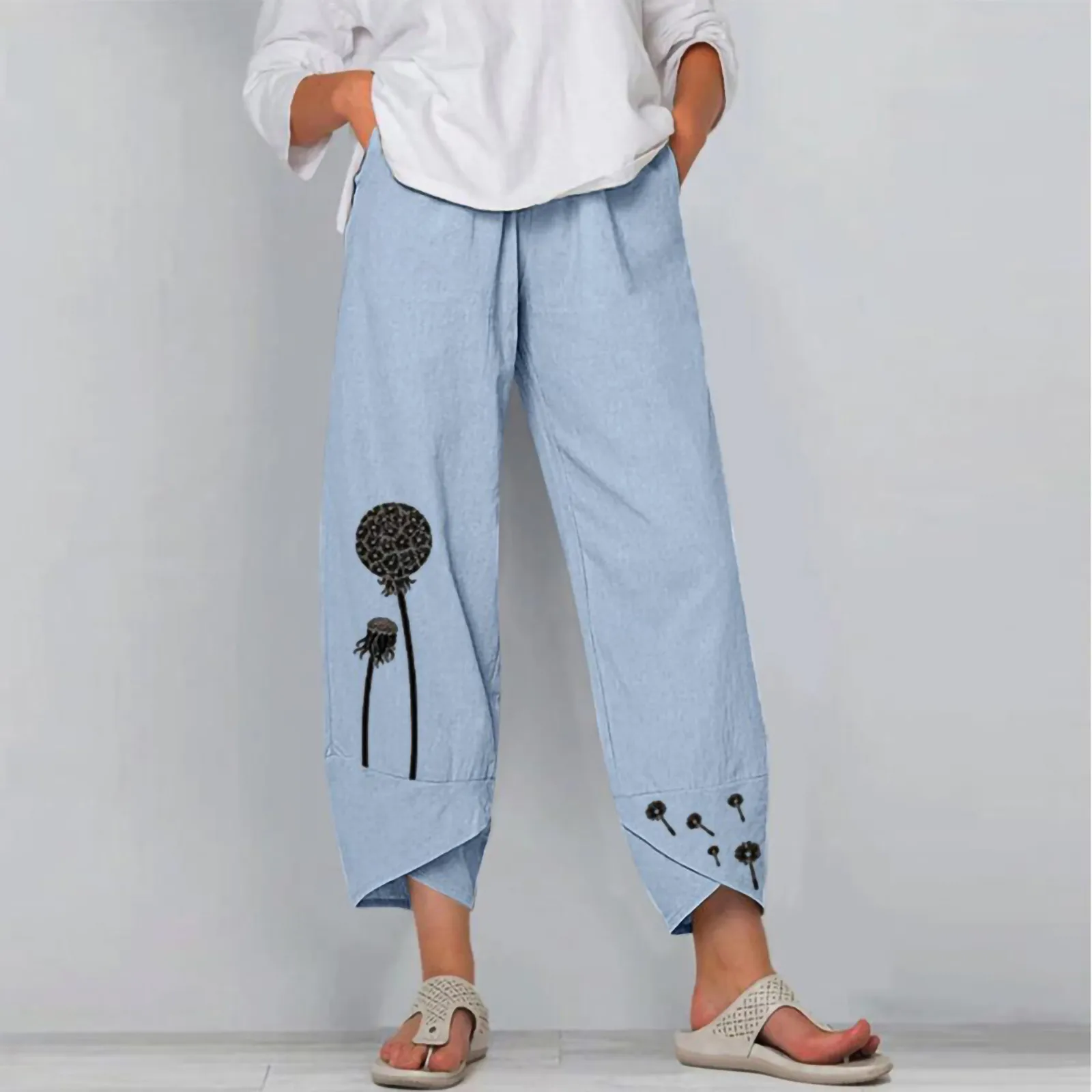 Женские хлопковые и льняные свободные шаровары с принтом растений, повседневные брюки, брюки