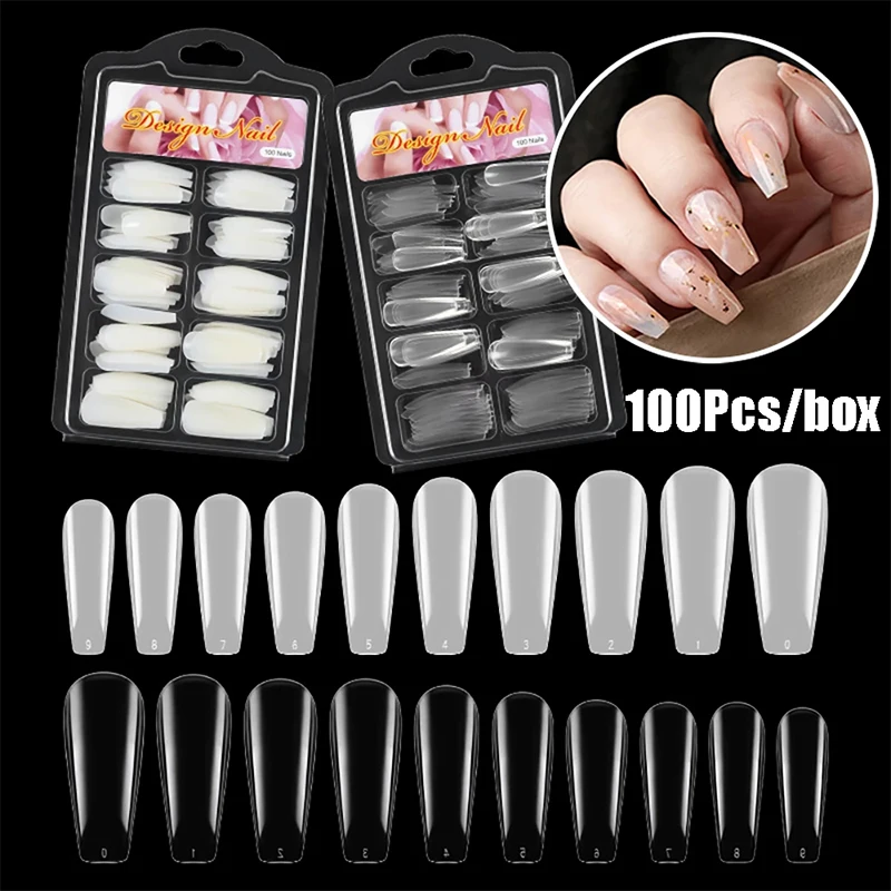 Накладные ногти для наращивания ногтей, прозрачные, акриловые, бесшовные, с полнымполовинным покрытием, декоративные инструменты для французского маникюра, 100 шт.