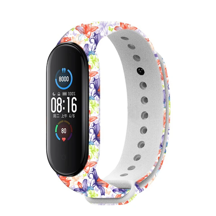 Печать с разноцветными цветами ремешок для Xiaomi mi band 6 mi band...