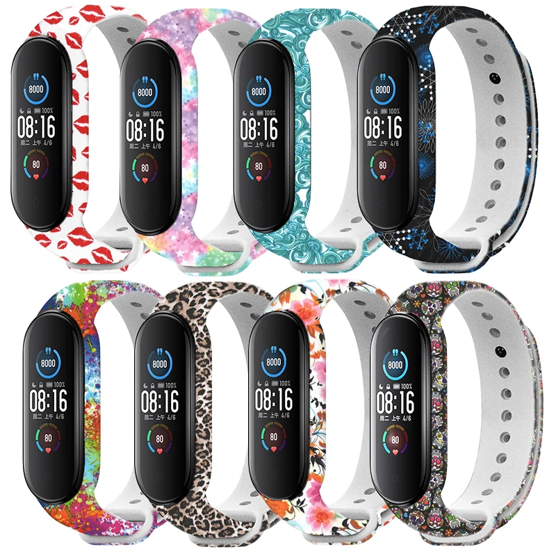 Цветастое печатание ремешок для Xiaomi Mi Band 6 5 4 3 Смарт-часы мягкий силиконовый Леопардовый браслет на запястье для mi band 3 4